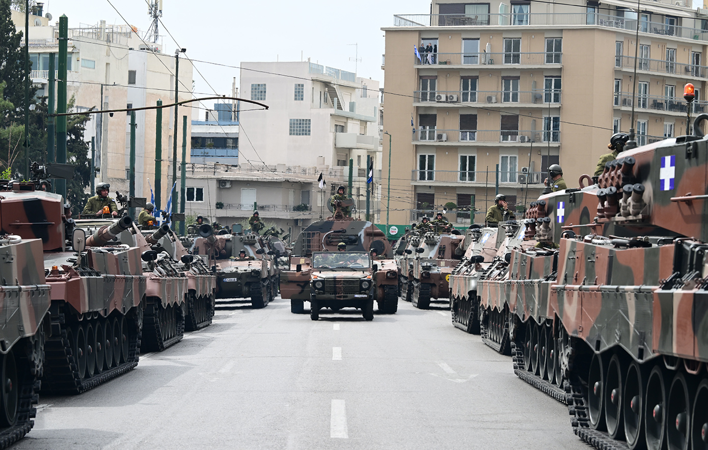 Μεταξύ άλλων, στη σημερινή στρατιωτική παρέλαση συμμετείχαν μια σειρά από οπλικά συστήματα των Ενόπλων Δυνάμεων όπως τα θηριώδη άρματα Leopard 2, οι πολλαπλοί εκτοξευτές πυραύλων MLRS, τα αυτοκινούμενα πυροβόλα Μ-109 & PzH 2000, μαχητικά αεροσκάφη F-16, Rafale, Mirage-2000, F-4E Phathom, ελικόπτερα Chinook, Apache, NH-90, Aegean Hawk και Super Puma.