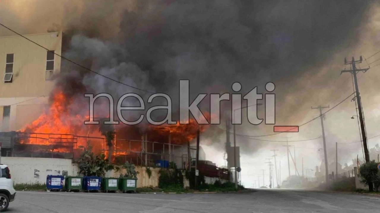 Μήνυμα μέσω του «112» εστάλη σε κατοίκους του Ηρακλείου, για την πυρκαγιά στο εργοστάσιο ξυλείας .