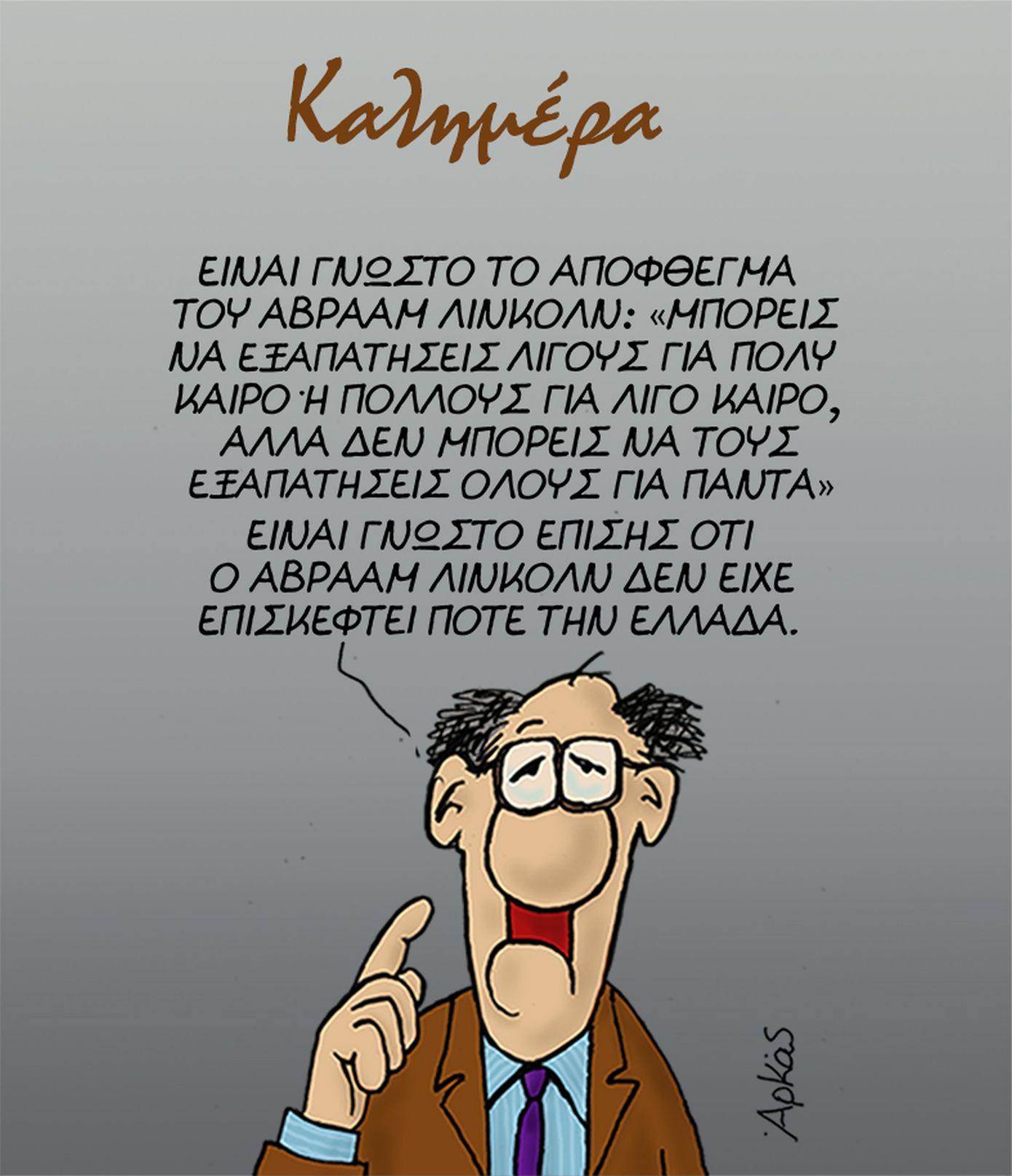 «Καλημέρα» στους διαδικτυακούς του φίλους με ένα απόφθεγμα του Αβραάμ Λίνκολν, λέει ο γνωστός σκιτσογράφος Αρκάς.