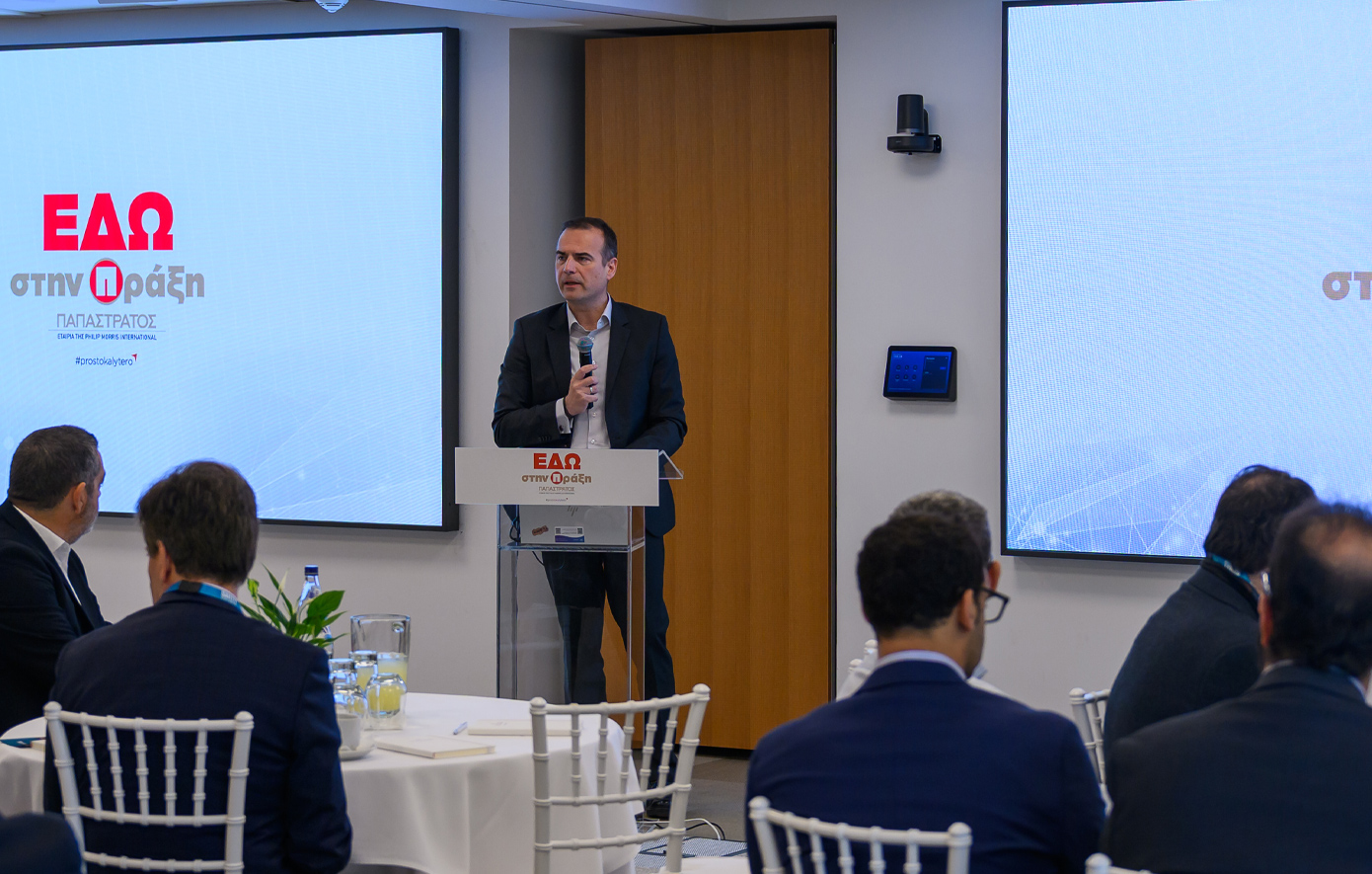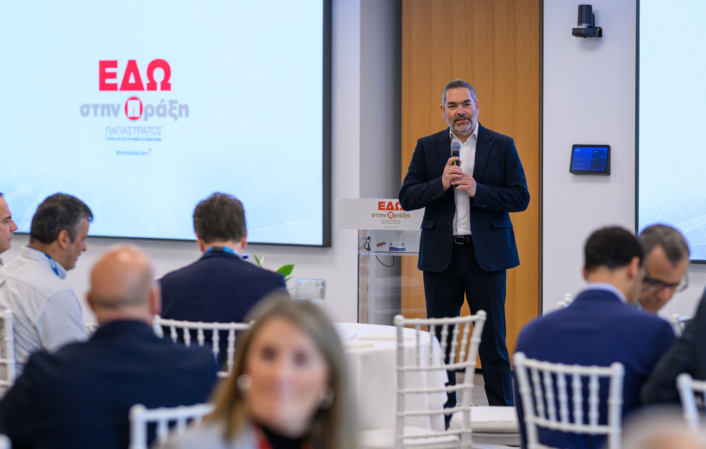Όπως ανέφερε χαρακτηριστικά: «Στο πλαίσιο της συνολικότερης στρατηγικής Βιώσιμης Ανάπτυξης, η Παπαστράτος έχει δεσμευτεί – διάφανα και δημόσια – να συμβάλλει ενεργά στη διαχείριση των υδάτινων πόρων και στη μείωση της κατανάλωσης νερού. Το εργοστάσιό μας είναι πιστοποιημένο με το AWS Standard (Alliance for Water Stewardship) και θέτουμε συνεχώς φιλόδοξους στόχους για τη μείωση της κατανάλωσης νερού ανά παραγόμενο προϊόν, αξιοποιώντας καινοτόμες τεχνολογίες. Στην Παπαστράτος πιστεύουμε πως τα μεγάλα θέματα της κοινωνίας, όπως είναι η διαχείριση του νερού, δεν μπορούν να αντιμετωπιστούν μόνο από έναν. Οι συμμαχίες, η συνεργασία μεταξύ κράτους και εταιρειών, η κοινή στόχευση των πολλών προς μια μεγάλη επιδίωξη, είναι ζωτικής σημασίας για να έχουμε αποτελεσματικές εκβάσεις και λύσεις. Η συντονισμένη δράση και η ανταλλαγή τεχνογνωσίας μπορούν να οδηγήσουν σε βιώσιμες λύσεις που θα ωφελήσουν την κοινωνία και, φυσικά, το περιβάλλον. Αυτό επιδιώκουμε να πετύχουμε εδώ, σήμερα, με τη δική σας συνδρομή».