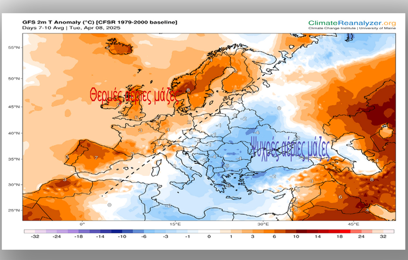 Οι αποκλίσεις των θερμοκρασιών στη χώρα μας αλλά και γενικότερα στα Βαλκάνια και την Ανατολική Ευρώπη θα είναι της τάξεως των 3 με 5 βαμών κάτω από τα κανονικά επίπεδα , ενω