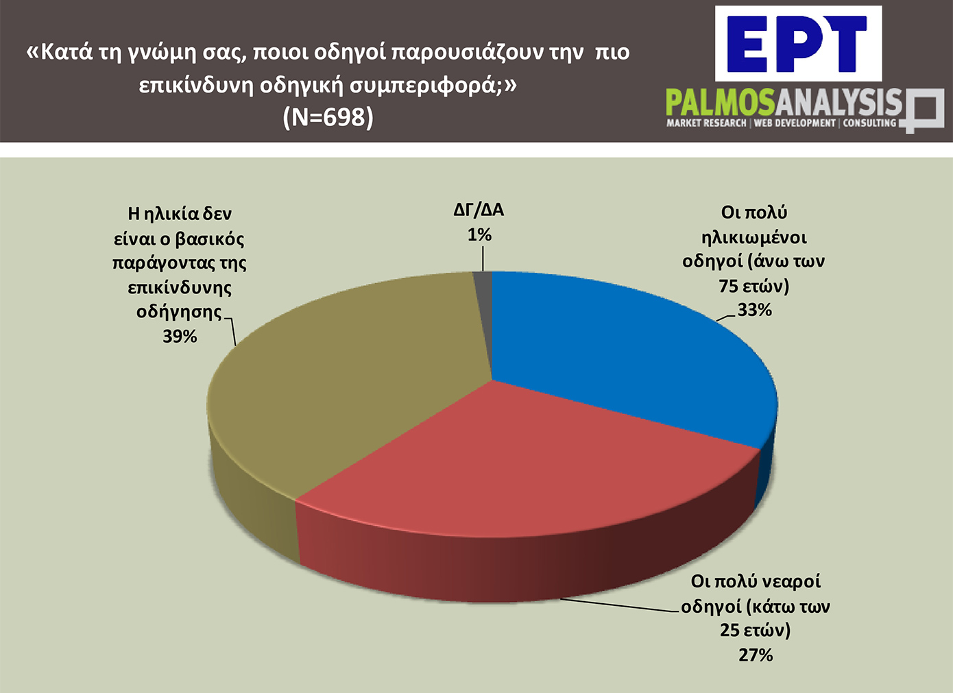Το 39% των ερωτηθέντων θεωρεί πως η ηλικία δεν αποτελεί τον καθοριστικό παράγοντα για επικίνδυνη οδήγηση.