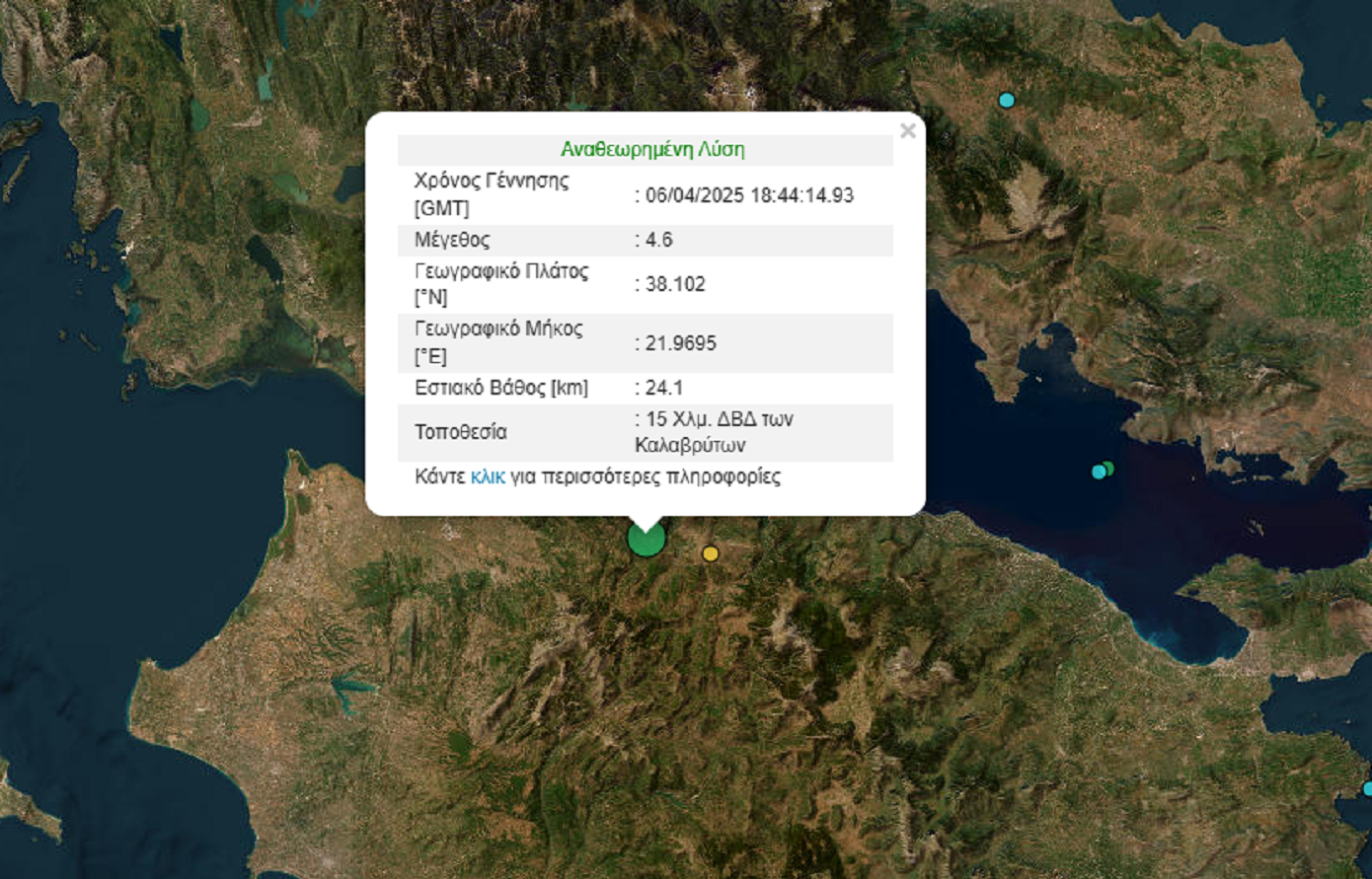 Σύμφωνα με τη μέτρηση από το Γεωδυναμικό Ινστιτούτο, το επίκεντρο εντοπίζεται 15 Χλμ. ΔΒΔ των Καλαβρύτων.
