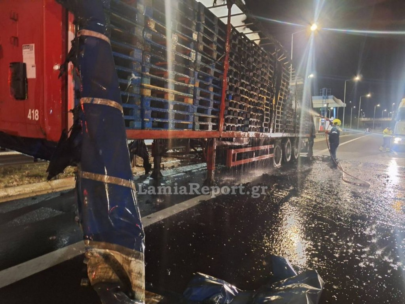 Συναγερμό σήμανε στην Πυροσβεστική Υπηρεσία το βράδυ της Τρίτης 08/4 για φωτιά που σημειώθηκε σε νταλίκα στην Εθνική Οδό στο ύψος της Λαμίας, κοντά στα διόδια Μαυρομαντήλας στο ρεύμα προς Θεσσαλονίκη.