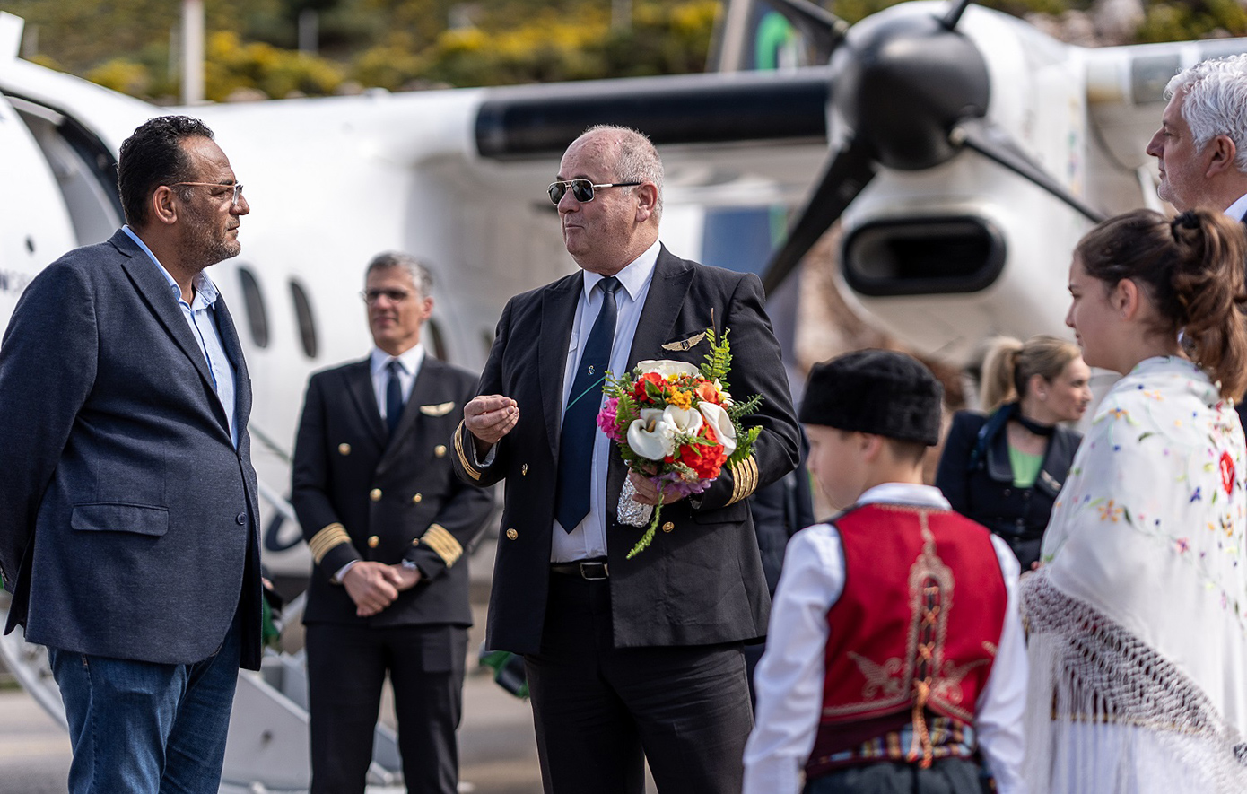 Την Κυριακή 30 Μαρτίου, ο Captain Μαζαράκης πραγματοποίησε την τελευταία του πτήση στο δρομολόγιο Ρόδος – Καστελλόριζο – Ρόδος, ολοκληρώνοντας μια σπουδαία επαγγελματική πορεία γεμάτη αφοσίωση, ήθος και επαγγελματισμό. Κατά την άφιξη της πτήσης στο Καστελλόριζο, ο Δήμος Μεγίστης οργάνωσε μια ζεστή εκδήλωση, όπου ο Δήμαρχος κ. Νικόλαος Ασβέστης και ο Αντιδήμαρχος κ. Μιχαήλ Στρατής Αμύγδαλος απέδωσαν τιμητική διάκριση στην Olympic Air και τον Κυβερνήτη Μαζαράκη, αναγνωρίζοντας τον κρίσιμο ρόλο τους στη συνδεσιμότητα του νησιού.
