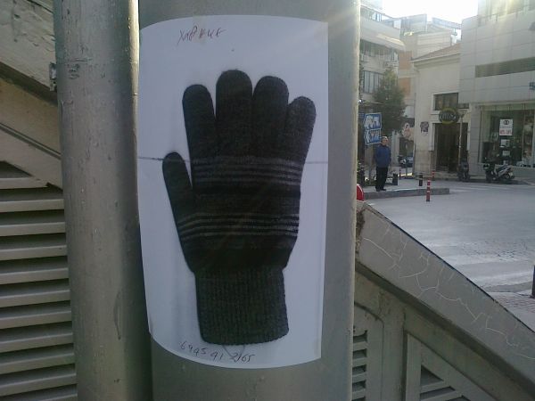 Κανείς δεν θα μπορούσε να πιστέψει ότι κάποιος που έχασε το γάντι του θα τοιχοκολλούσε την απώλειά του σε κεντρικό δρόμο της Λαμίας.