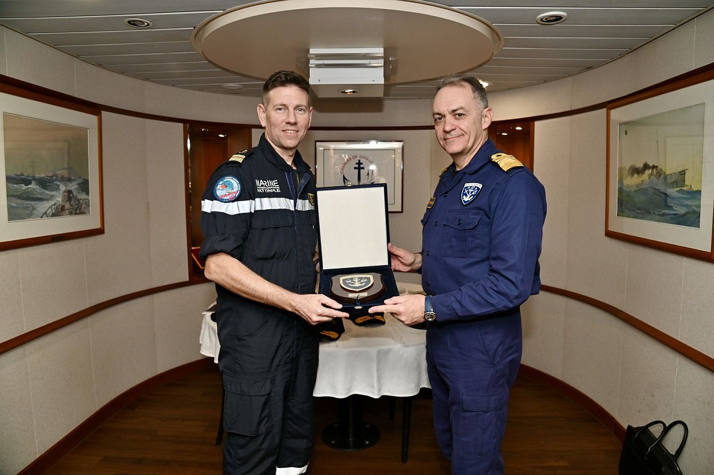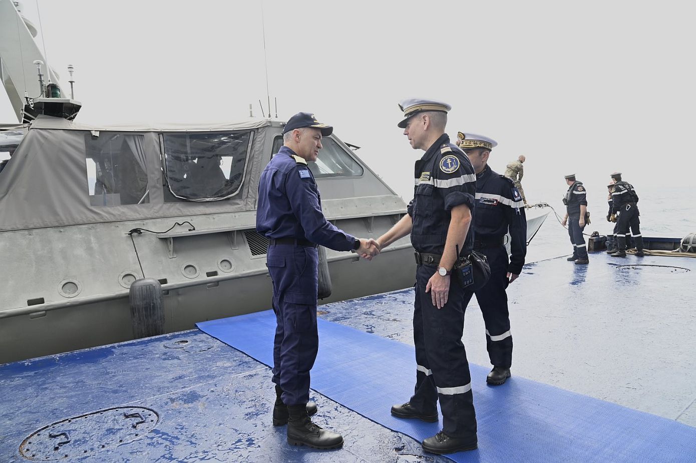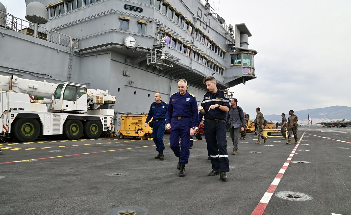 Ο Αρχηγός ΓΕΝ Αντιναύαρχος Δημήτριος – Ελευθέριος Κατάρας ΠΝ, εκπροσωπώντας και τον Αρχηγό ΓΕΕΘΑ Στρατηγό Δημήτριο Χούπη, πραγματοποίησε εθιμοτυπική επίσκεψη στο γαλλικό αεροπλανοφόρο, όπου τον υποδέχθηκε ο Γάλλος Διοικητής της Ναυτικής Δύναμης Task Force 473, Υποναύαρχος Jacques Mallard και ο Κυβερνήτης του αεροπλανοφόρου, Πλοίαρχος Georges-Antoine Florentin.