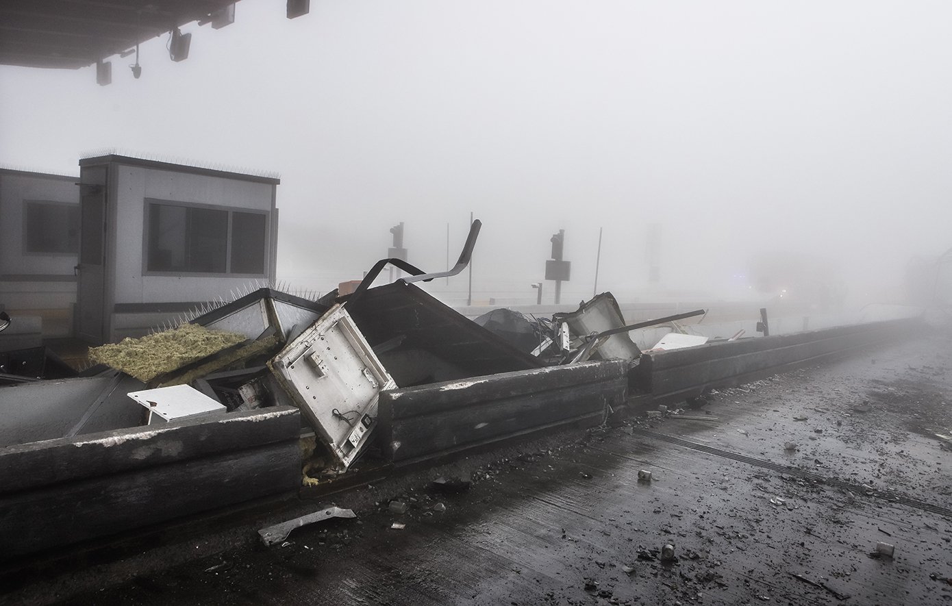 Αποκαλυπτικές της καταστροφής είναι οι εικόνες από το σημείο του τροχαίου δυστυχήματος που έγινε χθες το απόγευμα στην Εγνατία Οδό, στα διόδια Πολυμύλου. Δύο άνθρωποι απανθρακώθηκαν την ώρα που φορτηγό όχημα που οδηγούσε Ουκρανός υπήκοος συγκρούστηκε με δύο Ι.Χ. αυτοκίνητα στη λωρίδα των διοδίων για e-pass και όλα τα οχήματα έπεσαν πάνω στο κουβούκλιο των διοδίων, τραυματίζοντας ελαφρά την υπάλληλο.