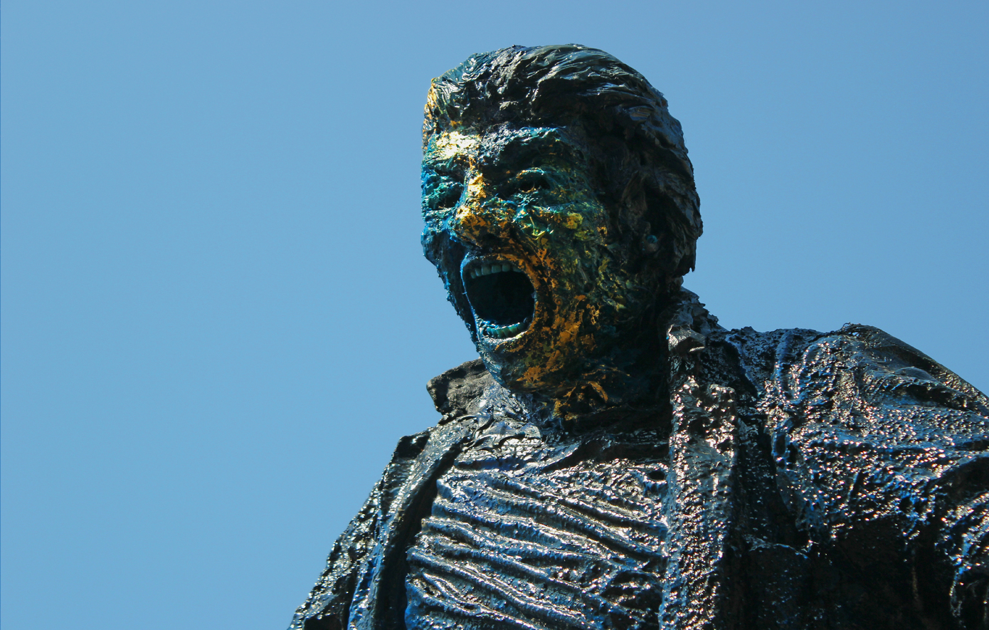 Με εξέπληξε θετικά το πόσο αγκάλιασε το γλυπτό η κοινωνία. Τόσο πολίτες, όσο και μεγάλες διεθνείς εταιρείες όπως η Mapei, η Knauf και η LaFarge στήριξαν τη δημιουργία του γλυπτού και τη συντήρησή του. Στα αποκαλυπτήρια είδα συνανθρώπους μας να ξεσπούν σε κλάματα χειροκροτώντας το έργο δίνοντάς μου δύναμη να συνεχίζω. Φυσικά, όταν δρας για το κοινό καλό, υπάρχουν συνέπειες. Στοχεύοντας τα δάχτυλα του γλυπτού που είναι και το πιο αδύναμο σημείο του, ένας βάνδαλος χτύπησε το γλυπτό τρεις φορές με σφυρί και η παρέα του τον βιντεογράφησε. Την τρίτη φορά, το σφυρί του έσπασε. Ο δικαστής τιμώρησε τον βάνδαλο με 18 μήνες, ακριβώς όσο χρόνο αφιέρωσα να δημιουργήσω το γλυπτό στο εργαστήριό μου στο Μαρούσι.