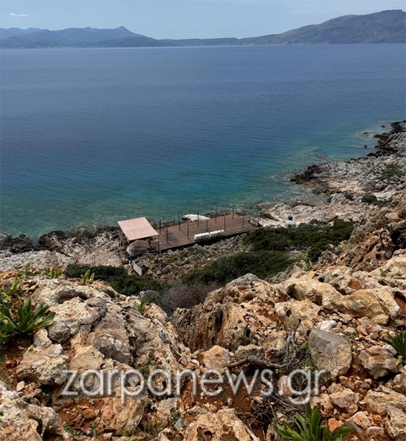 Σφοδρές αντιδράσεις έχει προκαλέσει η μεταλλική εξέδρα που έχει «ξεφυτρώσει» πάνω στα βράχια, σε μια από τις πιο αγνές περιοχές του νομού Χανίων, στο δυτικό τμήμα της χερσονήσου Ροδωπού.
