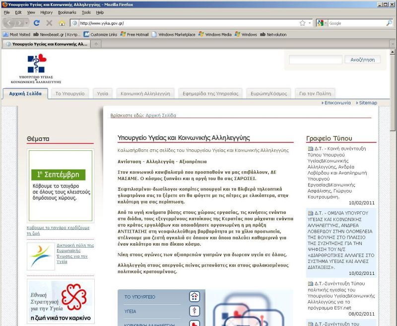 Χάκερς ανέβασαν στην κεντρική ιστοσελίδα του υπουργείου Υγείας ανακοίνωση συμπαράστασης στους μετανάστες απεργούς πείνας και στους φυλακισμένους πολιτικούς κρατούμενους.