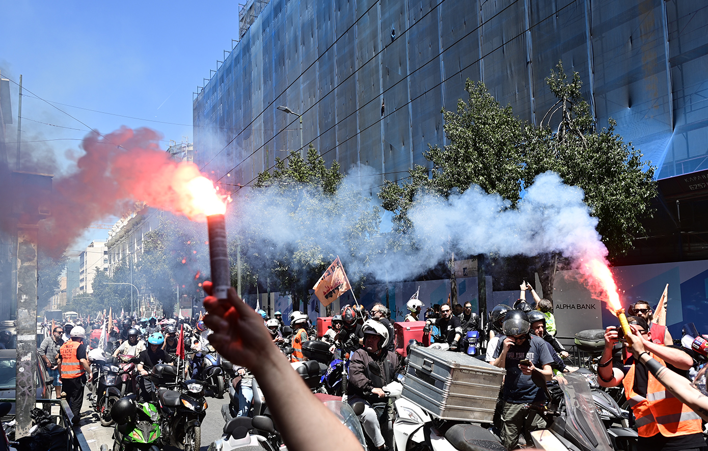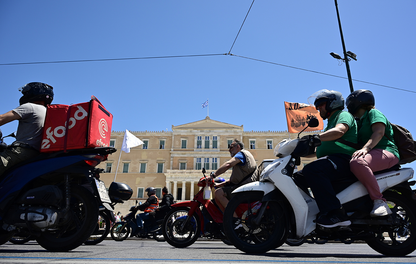 Ένα μηχανοκίνητο «ποτάμι» στους δρόμους της Αθήνας δημιούργησαν οι εργαζόμενοι οδηγοί δικύκλου («ντελιβεράδες»), διανομείς και μεταφορείς, που σήμερα, 8 Μαΐου, προχώρησαν σε γενική απεργία, με βασικό αίτημα την αναγνώριση βαρέων και ανθυγιεινών ενσήμων και τη θεσμοθέτηση 7ωρου ωραρίου, με πενθήμερη εργασία και αυξήσεις στους μισθούς.