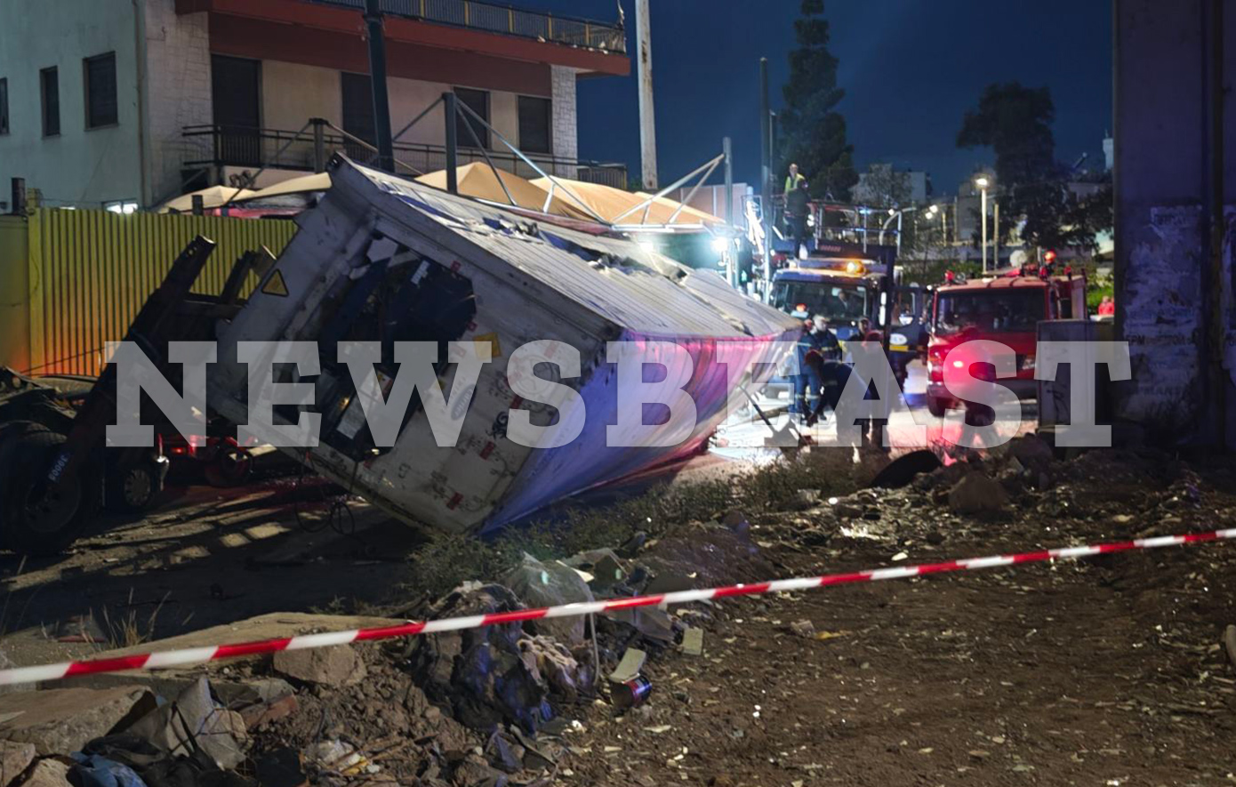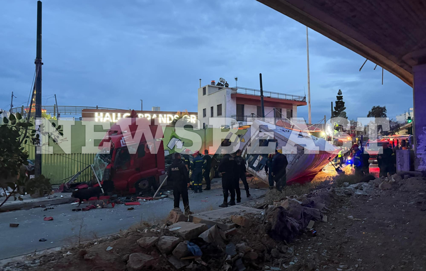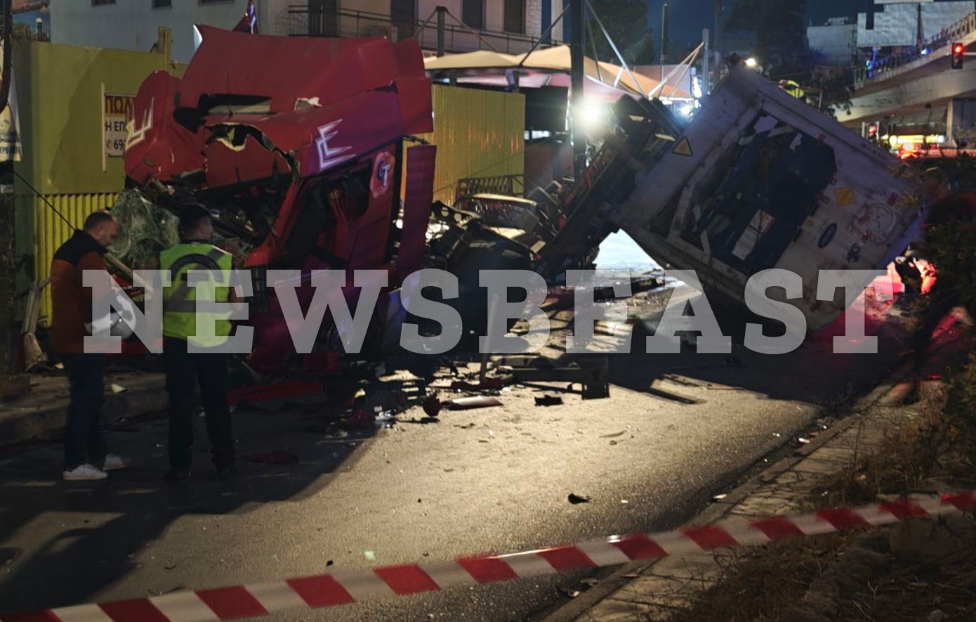 Σύμφωνα με τις πρώτες πληροφορίες ο οδηγός της νταλίκας απεγκλωβίστηκε έχοντας ελαφρά τραύματα και μεταφέρεται στο Νοσοκομείο «Αττικόν».