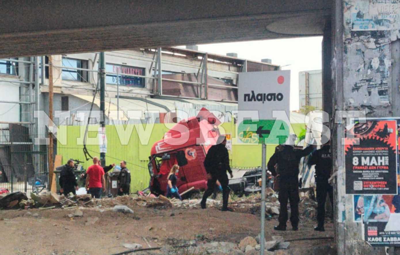 Φορτηγό έπεσε από τη γέφυρα στην Πέτρου Ράλλη και κατέληξε στη Θηβών, λίγο μετά τις 19.30 το απόγευμα της Πέμπτης.