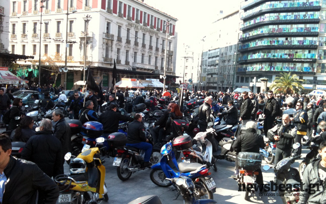 Περισσότερα από 150 μηχανάκια έχουν συγκεντρωθεί αυτή την ώρα στην πλατεία Ομονοίας. Οι οδηγοί που δουλεύουν στην ΕΘΕΛ ετοιμάζονται να κάνουν πορεία με κατεύθυνση τη Βουλή και οι πληροφορίες αναφέρουν ότι μετά θα κινηθούν προς το υπουργείο Μεταφορών για να συναντήσουν τους οδηγούς των φορτηγών.