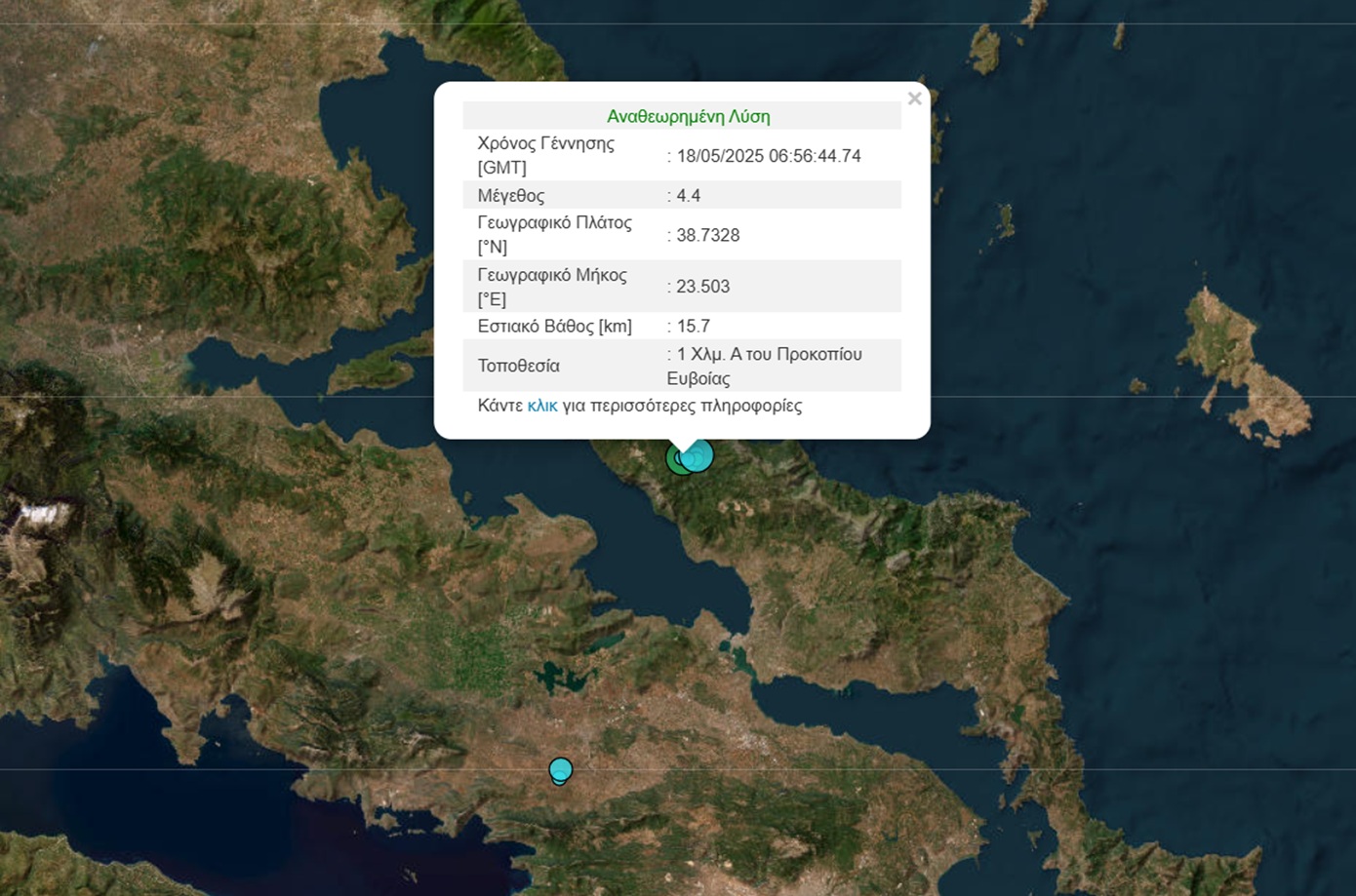 Σεισμός 4,4 βαθμών της κλίμακας Ρίχτερ σημειώθηκε στις 09:56 της Κυριακής 18/05 στην Εύβοια.