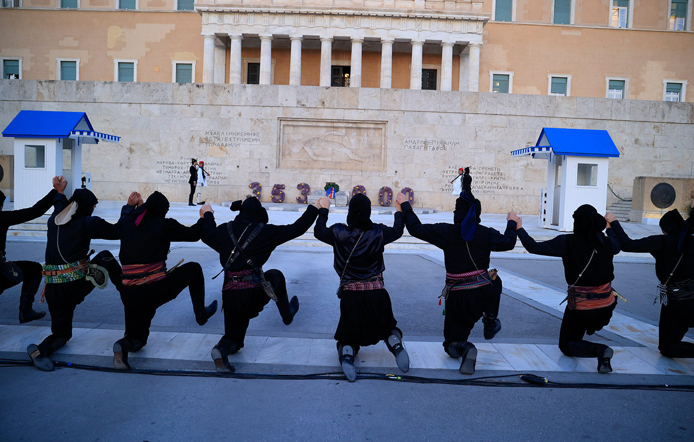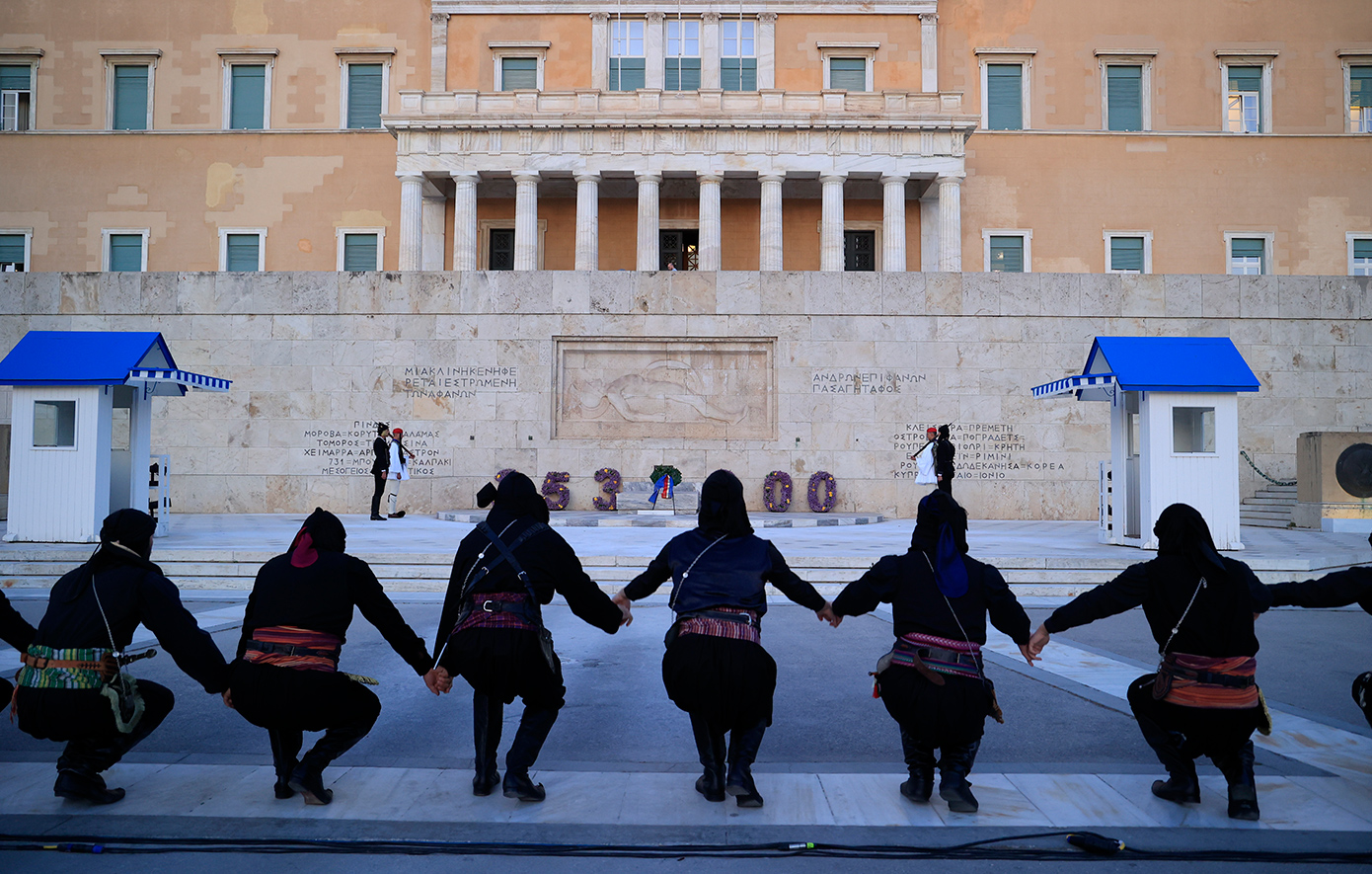 Ποντιακοί σύλλογοι και σωματεία κατέθεσαν στεφάνια, ενώ πλήθος κόσμου παρακολούθησε την αλλαγή φρουράς.