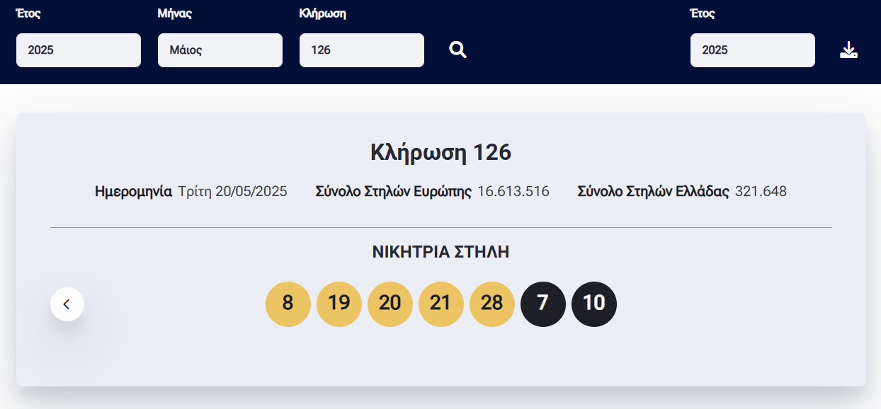 Πραγματοποιήθηκε, σήμερα Τρίτη 20 Μαΐου, η 126η κλήρωση του Eurojackpot που μοιράζει το ποσό των 27 εκατομμυρίων ευρώ.