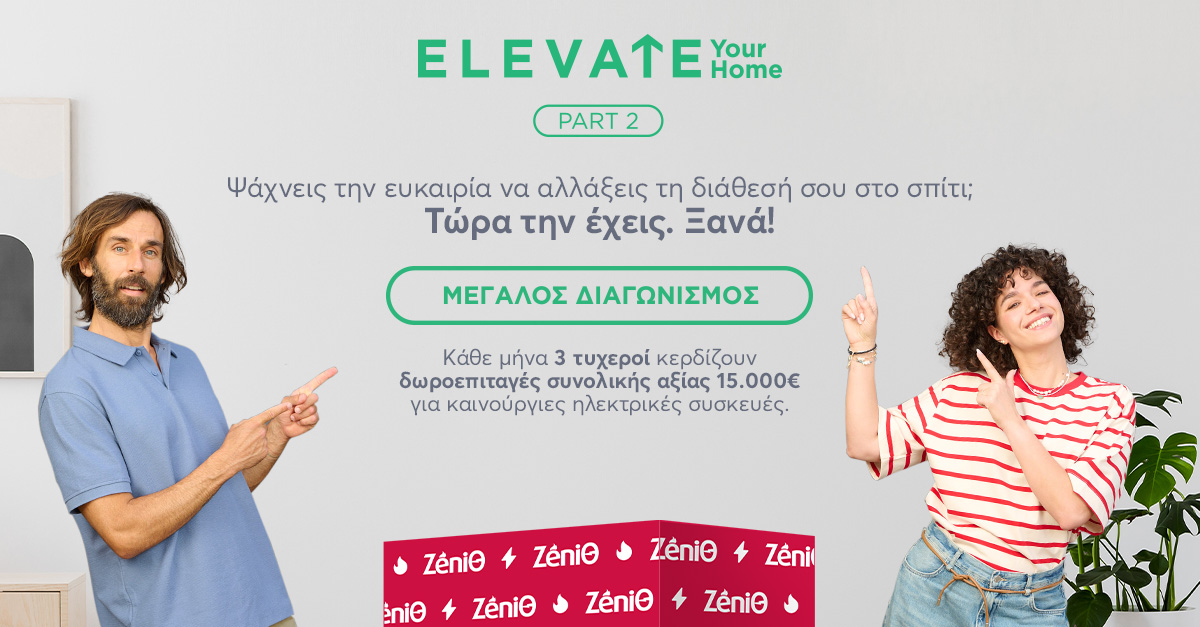 Για ακόμα μία φορά λοιπόν, η ΖeniΘ, μέσα από τον διαγωνισμό «Elevate your Home Part 2» σας δίνει την ευκαιρία να αναβαθμίσετε τον οικιακό σας εξοπλισμό.