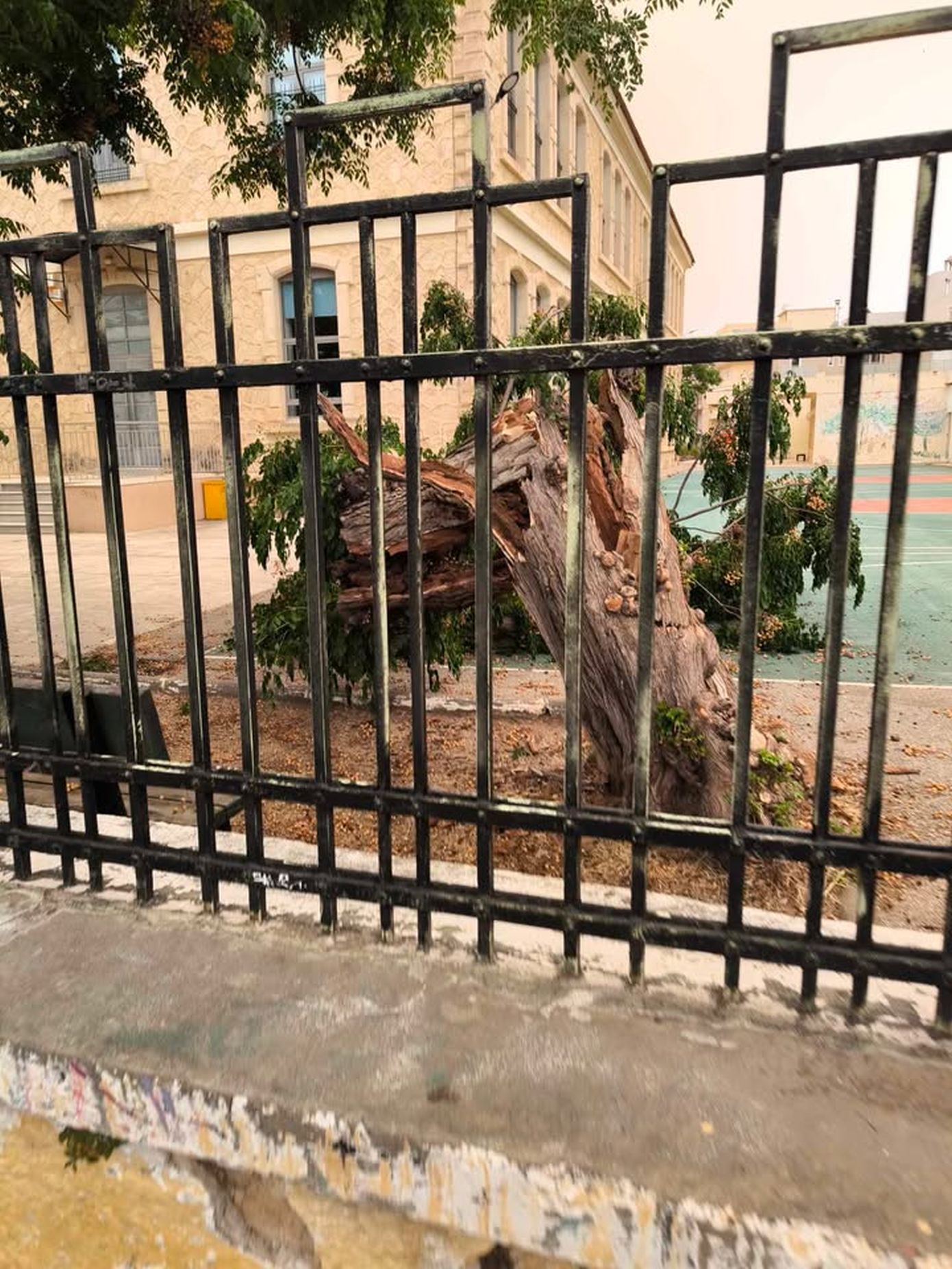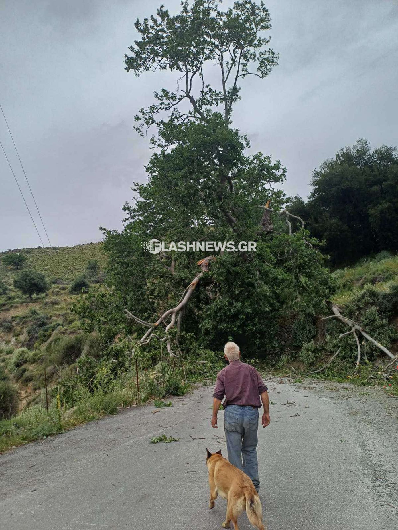 Στα Χανιά και, συγκεκριμένα, στη Σκουροχλάδα Κεραμιών ολόκληρος πλάτανος έπεσε από τον αέρα και κατέληξε στον δρόμο αποκλείοντας την πρόσβαση προς το χωριό, σύμφωνα με το flashnews.gr. Στα σχολεία της Κοραή, δέντρο έσπασε και έπεσε στην αυλή. Από θαύμα δεν σημειώθηκε τραυματισμός.