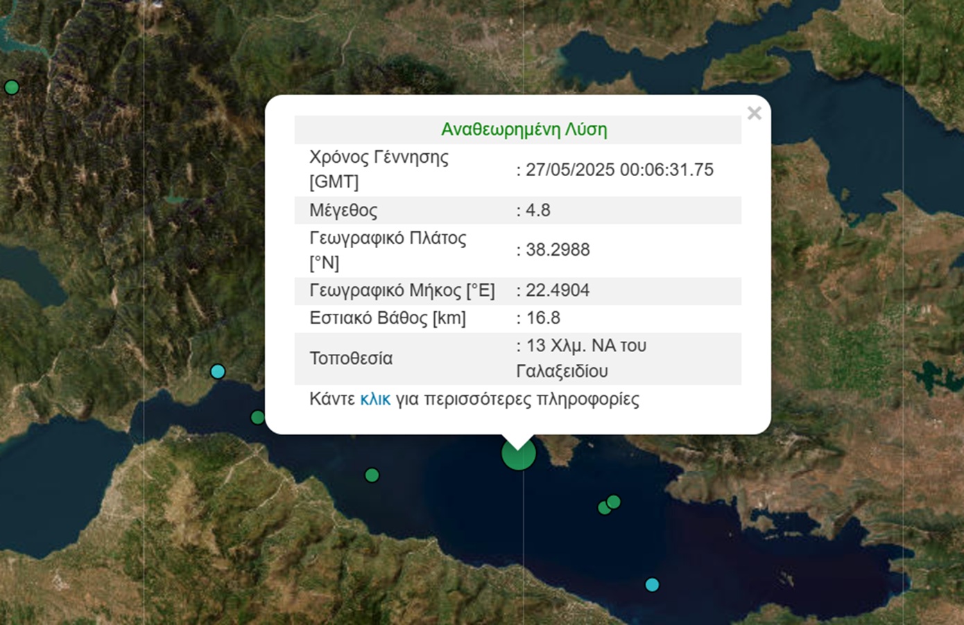 Υπενθυμίζεται ότι τα δεδομένα για τον σεισμό, που προέρχονται από το Γεωδυναμικό Ινστιτούτο Αθηνών ή από το Ευρωμεσογειακό Σεισμολογικό Ινστιτούτο, είναι λύσεις προερχόμενες από το αυτόματο υπολογιστικό σύστημα, χωρίς τη συμμετοχή σεισμολόγου. Ενημερώνονται συνεχώς με την άφιξη νέων δεδομένων.