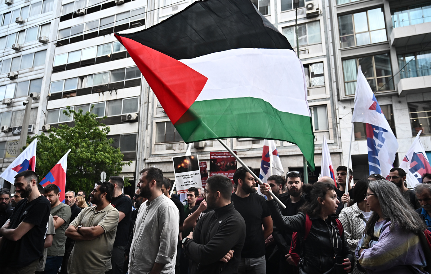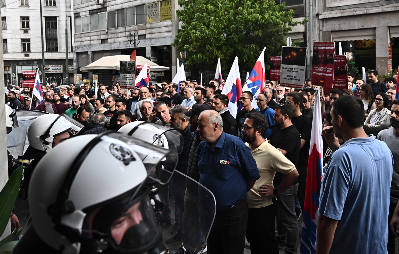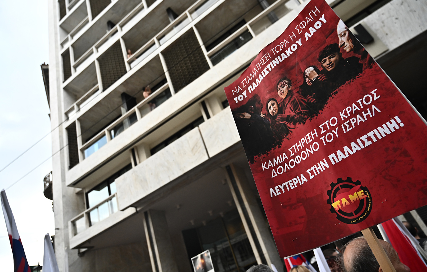 Συγκέντρωση διαμαρτυρίας έξω από ξενοδοχείο στην Ομόνοια όπου θα λάμβανε χώρα συνέδριο για την οικονομική συνεργασία Ελλάδας – Ισραήλ πραγματοποίησε το «ΠΑΜΕ».