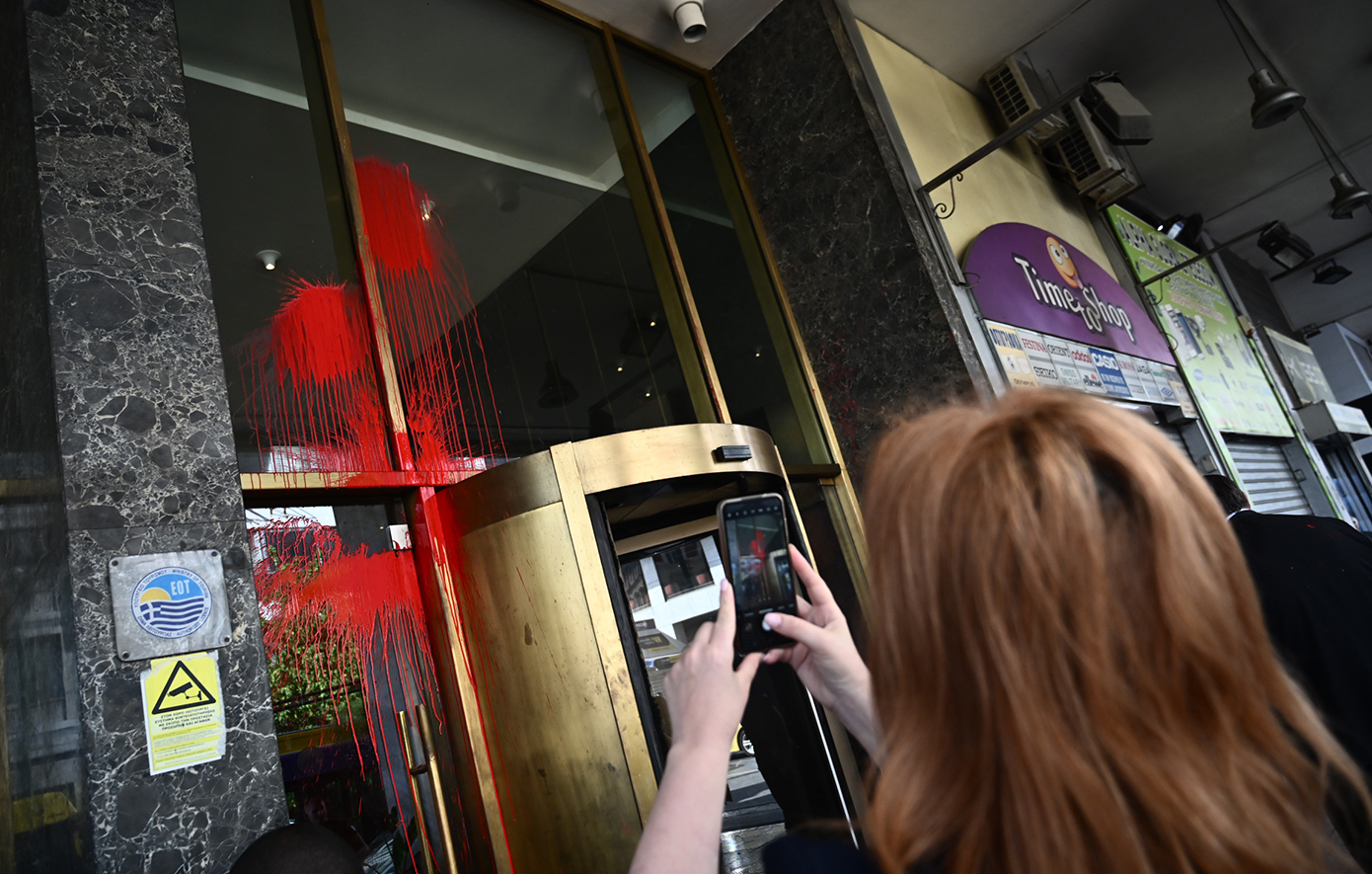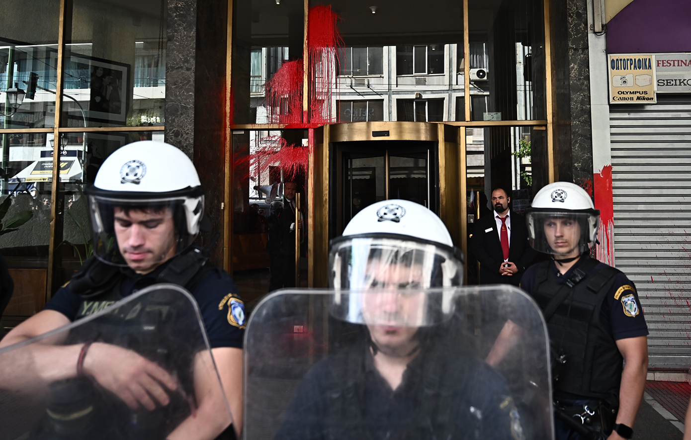 Το συνέδριο διοργάνωνε το Εμπορικό και Βιομηχανικό Επιμελητήριο Πειραιά, με τη συμμετοχή ισραηλινών οικονομικών παραγόντων. Οι συγκεντρωμένοι φώναξαν συνθήματα υπέρ της Παλαιστίνης, ενώ πέταξαν και μπογιές.