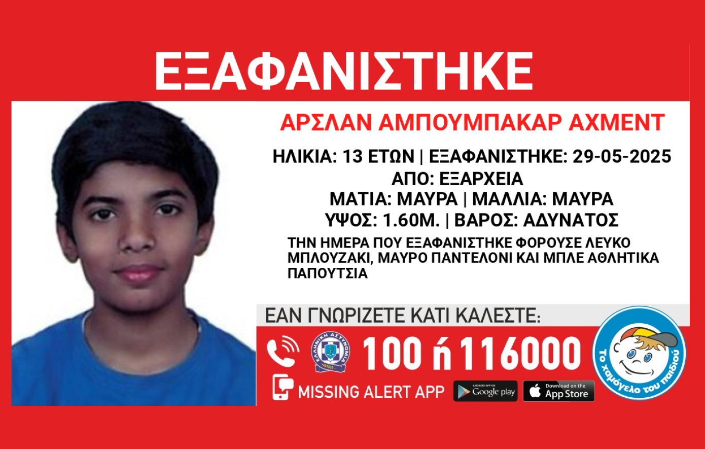 Συναγερμός έχει σημάνει για την εξαφάνιση ενός 13χρονου αγοριού από χώρο φιλοξενίας ασυνόδευτων ανηλίκων στην περιοχή των Εξαρχείων, την Πέμπτη 29 Μαΐου.