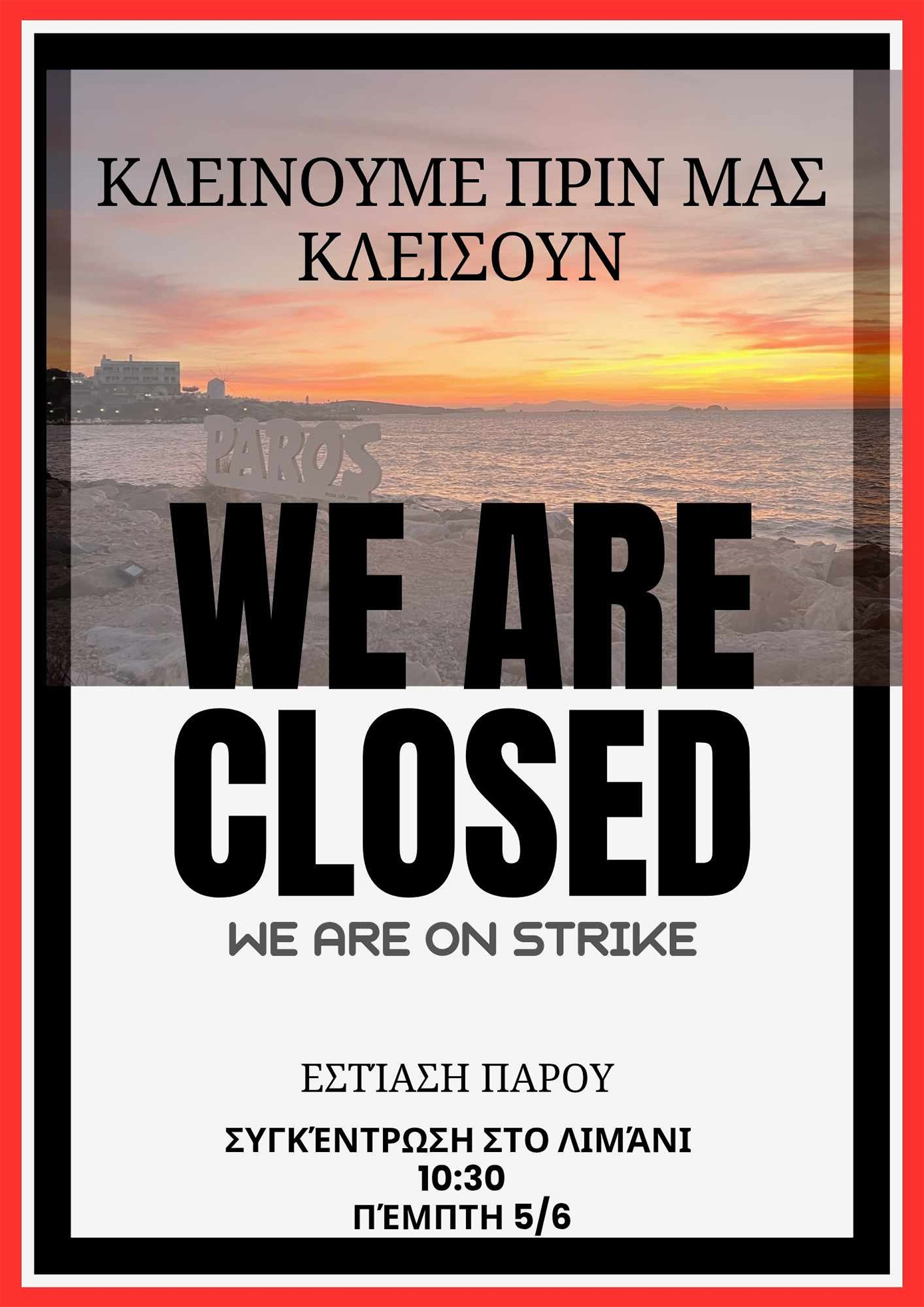 Πέμπτη 5 Ιουνίου, απεργούν οι παραθαλάσσιες επιχειρήσεις της Πάρου.