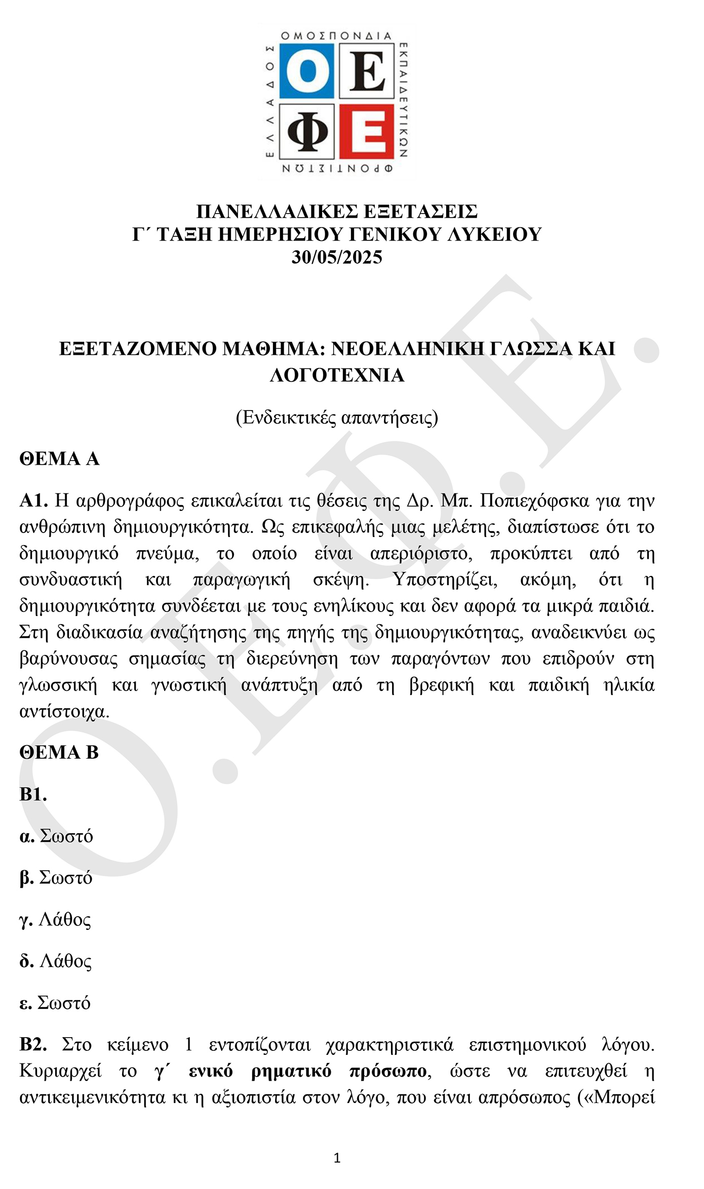 Δείτε εδώ τις απαντήσεις στα θέματα από την ΟΕΦΕ