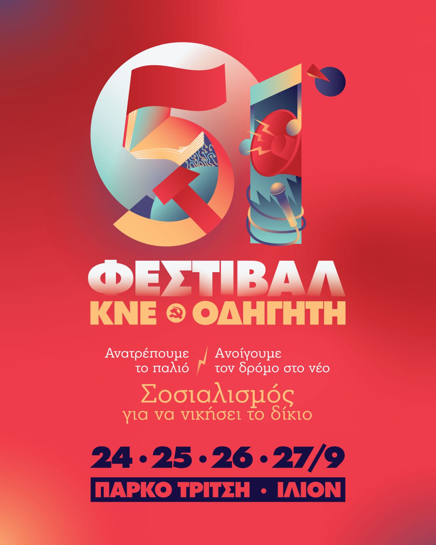 Με σύνθημα «Ανατρέπουμε το παλιό, ανοίγουμε το δρόμο στο νέο. Σοσιαλισμός για να νικήσει το δίκιο!», το 51ο Φεστιβάλ ΚΝΕ-Οδηγητή ξεκινά το «ταξίδι» του σε όλη τη χώρα, δίνοντας ξανά το παρών σε δεκάδες πόλεις, για να κορυφωθεί στην Αθήνα, στις 24, 25, 26 και 27 Σεπτεμβρίου, στο Πάρκο Περιβαλλοντικής Ευαισθητοποίησης, “Αντώνης Τρίτσης”.