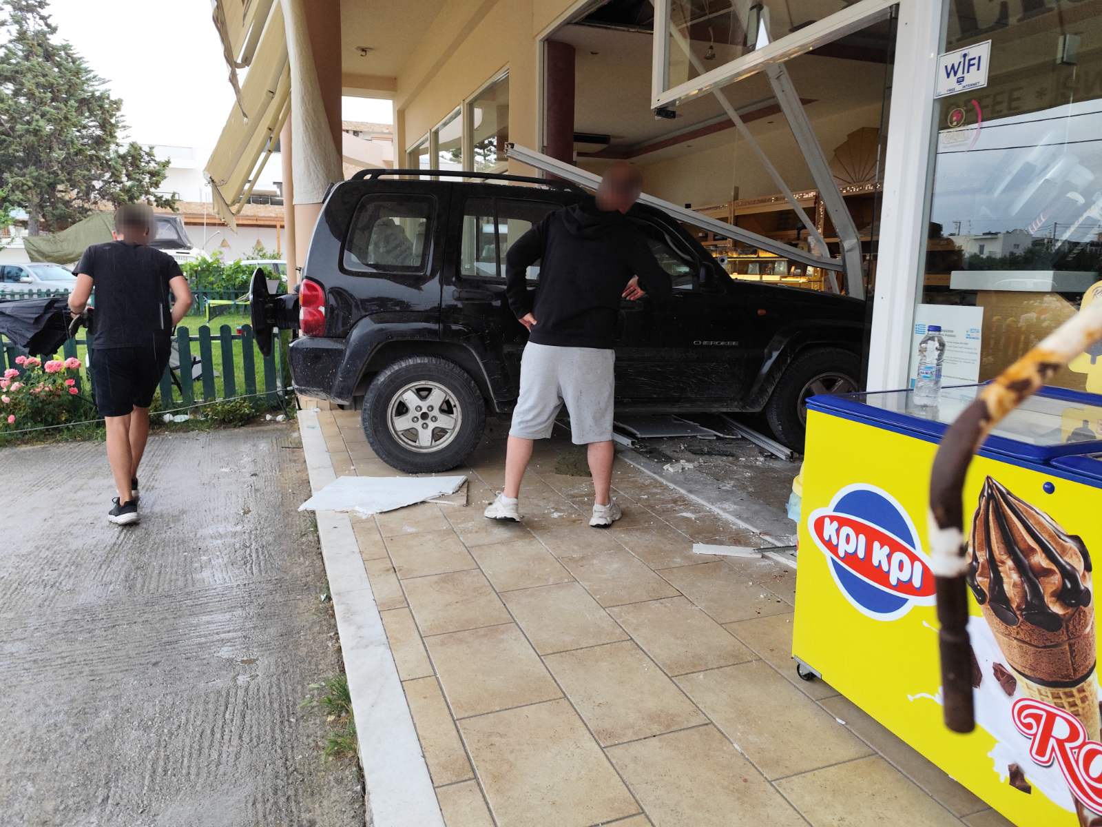 Ο 50χρονος οδηγός του τζιπ που εργάζεται σε ξενοδοχείο της περιοχής πήρε το αυτοκίνητο άλλου κάτοικου του νησιού για να πάει στον φούρνο. Σύμφωνα με πληροφορίες αντί να πατήσει φρένο στο αυτόματο όχημα πάτησε γκάζι με αποτέλεσμα να καρφωθεί στο κατάστημα.