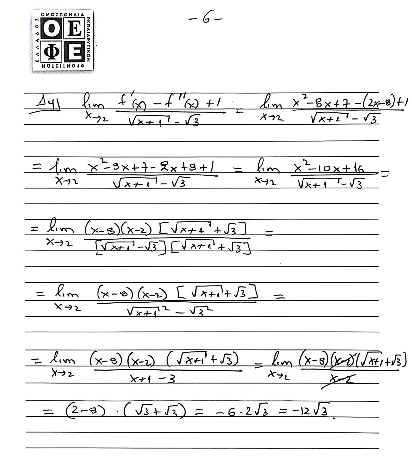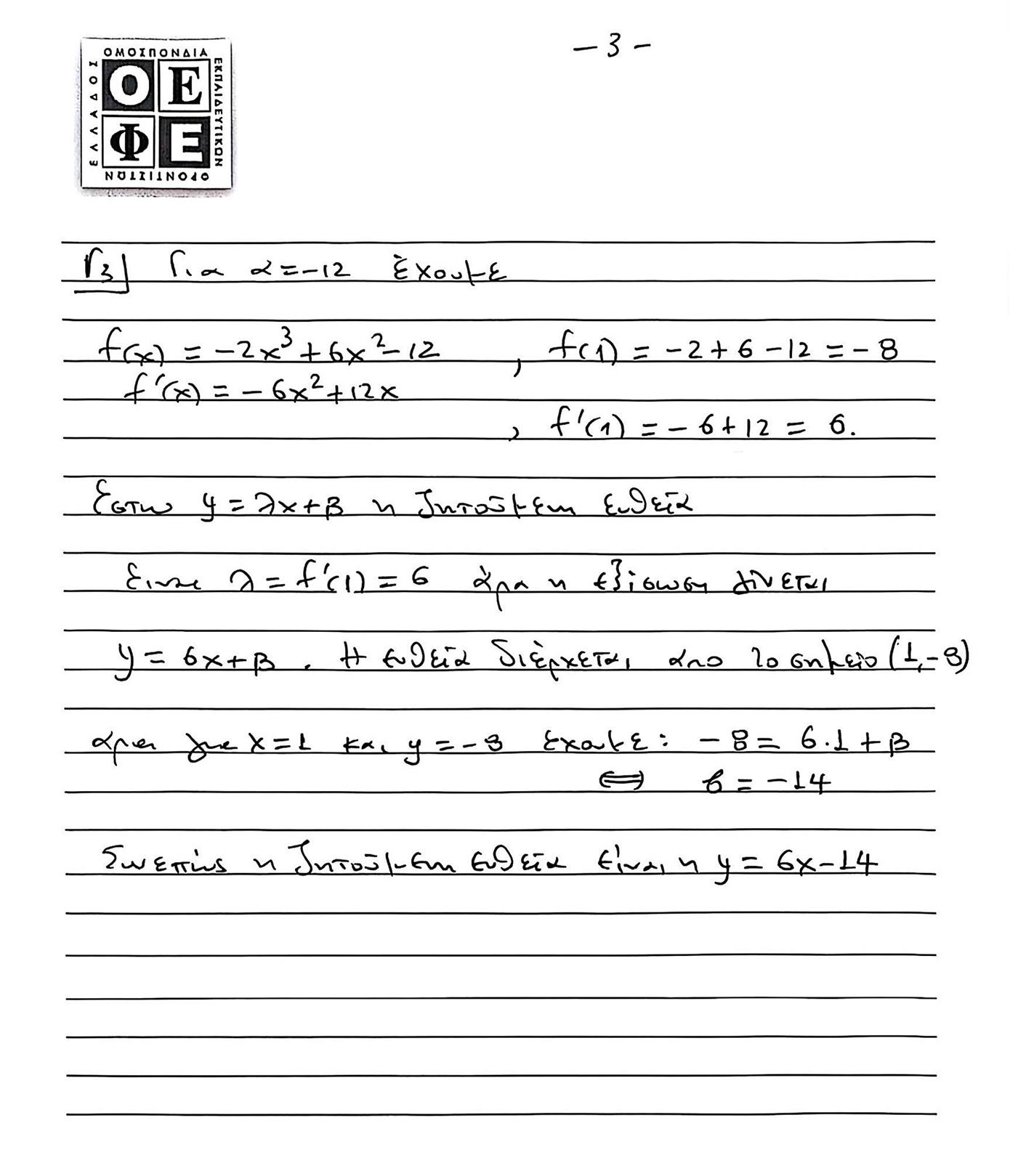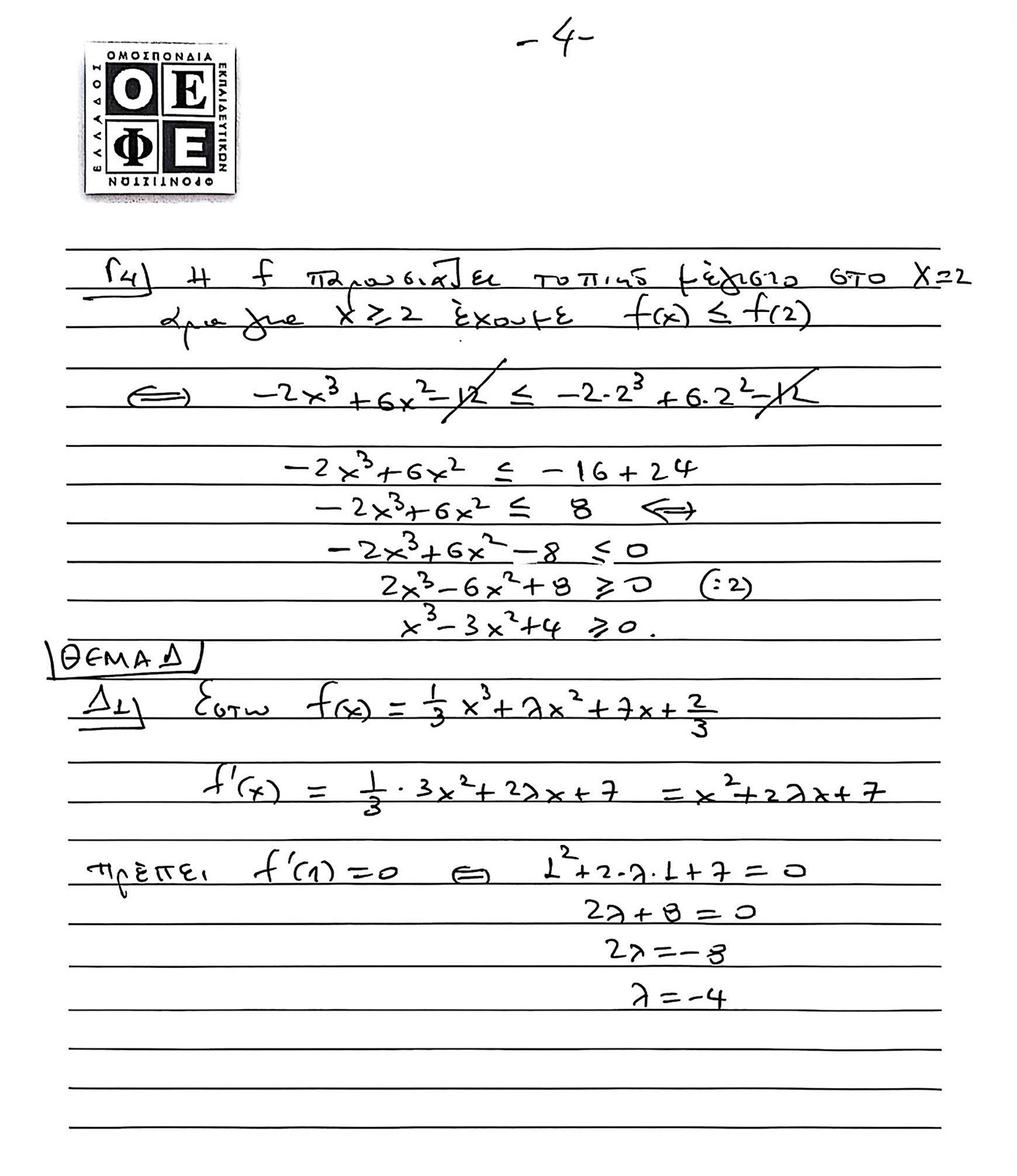 Θέμα Δ: Θέμα διαφορικού λογισμού, αυξημένης δυσκολίας. Το ερώτημα Δ3 θα προβληματίσει αρκετούς υποψηφίους».