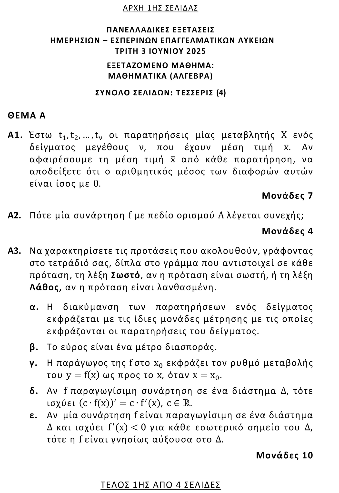 Στα Μαθηματικά (Άλγεβρα) διαγωνίστηκαν σήμερα οι υποψήφιοι των ΕΠΑΛ στις Πανελλήνιες 2025.