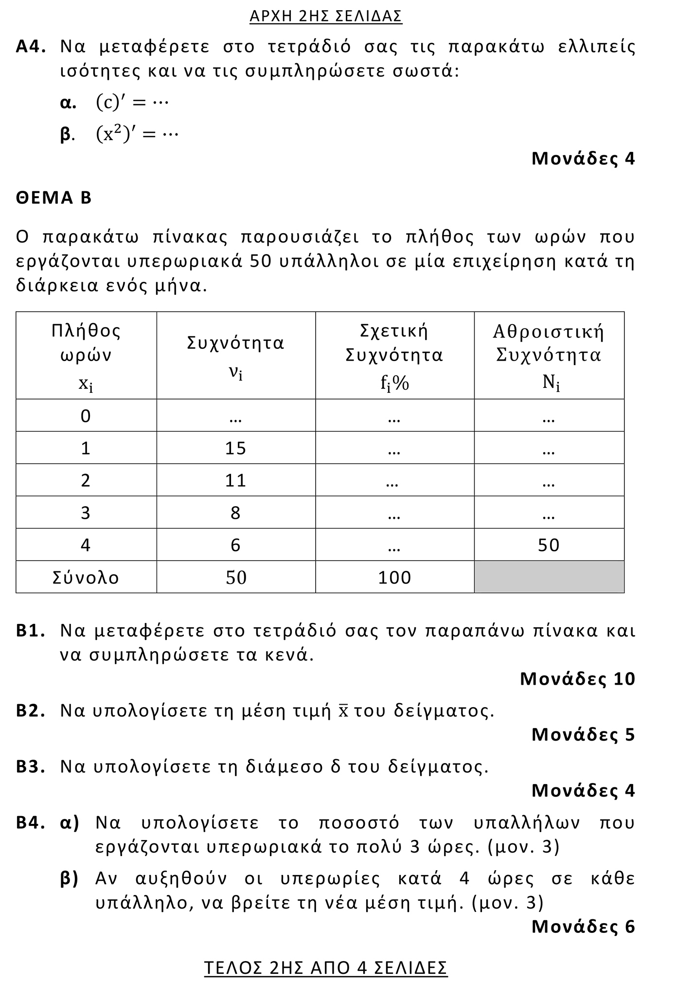 Θέμα Β: Βασικό θέμα στατιστικής, χωρίς ιδιαίτερες δυσκολίες