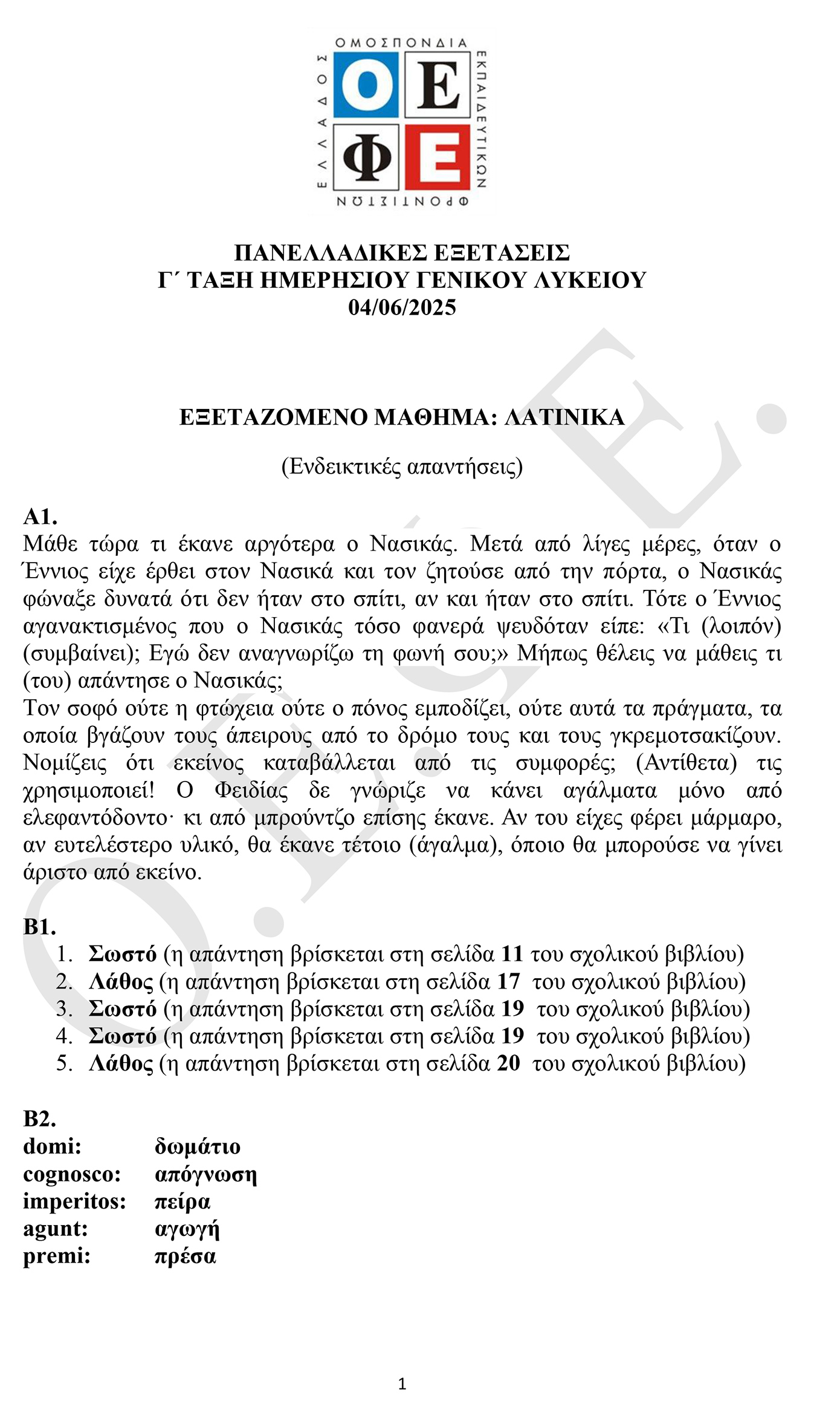 Εδώ οι απαντήσεις στα Λατινικά από την ΟΕΦΕ