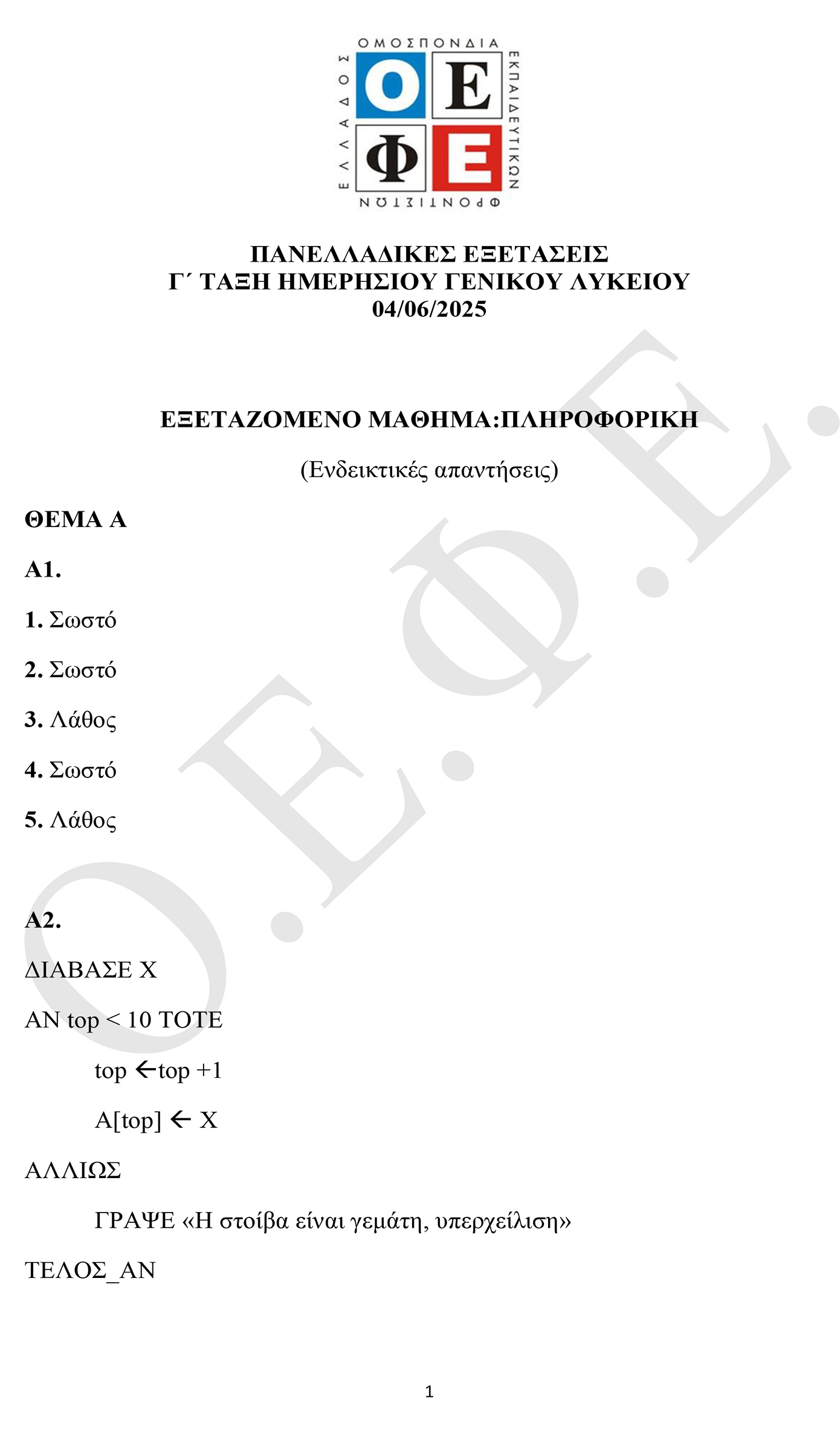 Εδώ οι απαντήσεις στην Πληροφορική από την ΟΕΦΕ