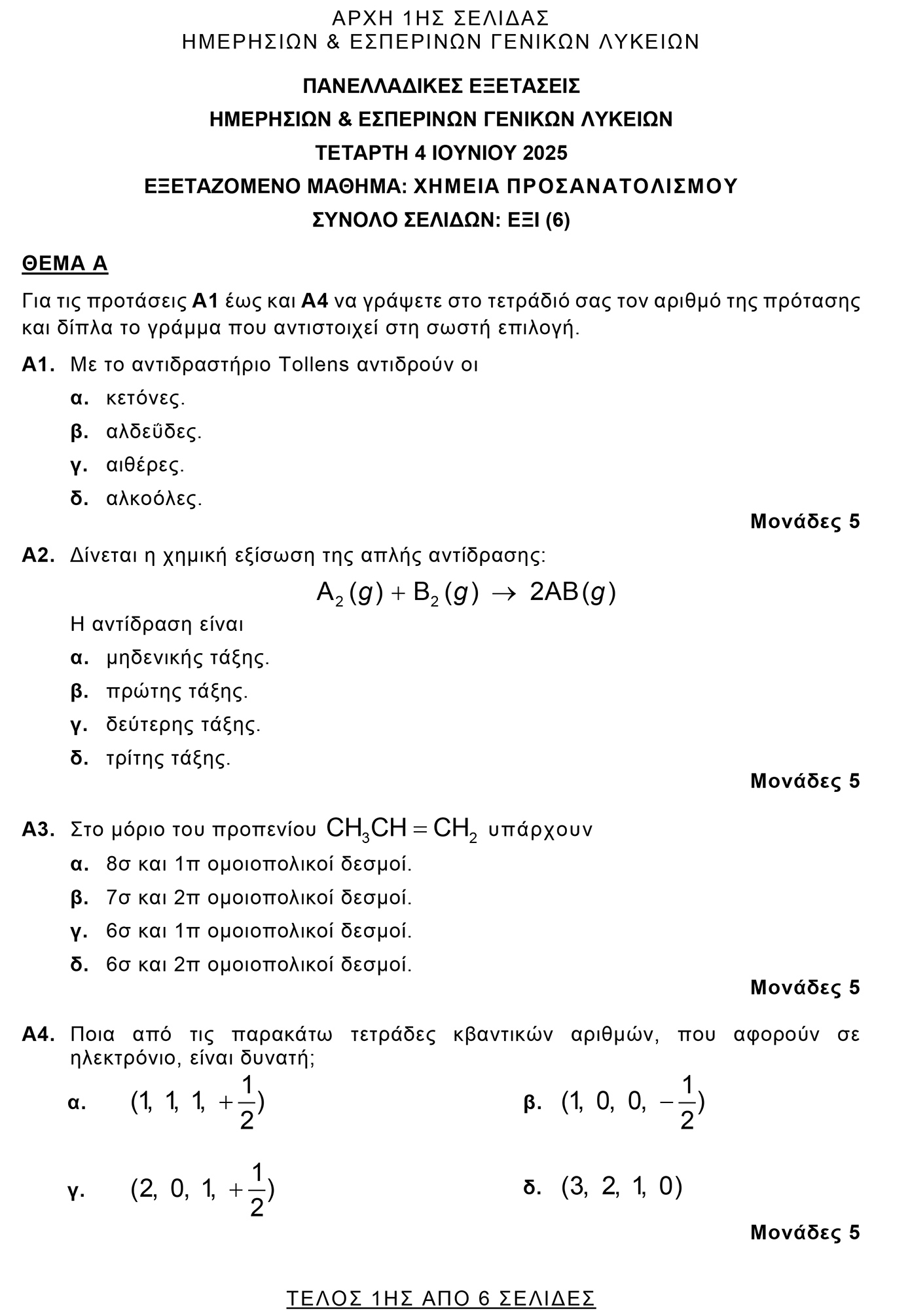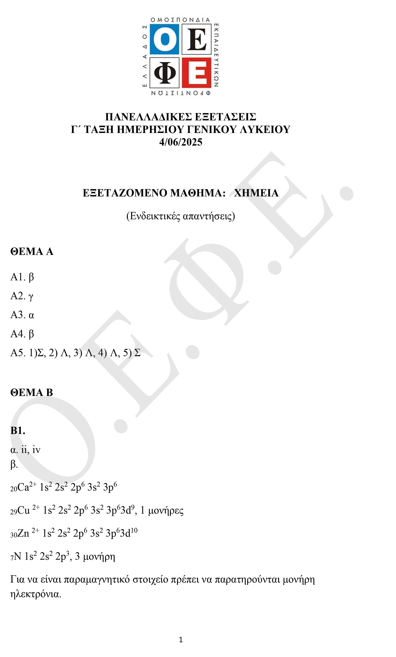 Εδώ οι απανήσεις στη Χημεία από την ΟΕΦΕ
