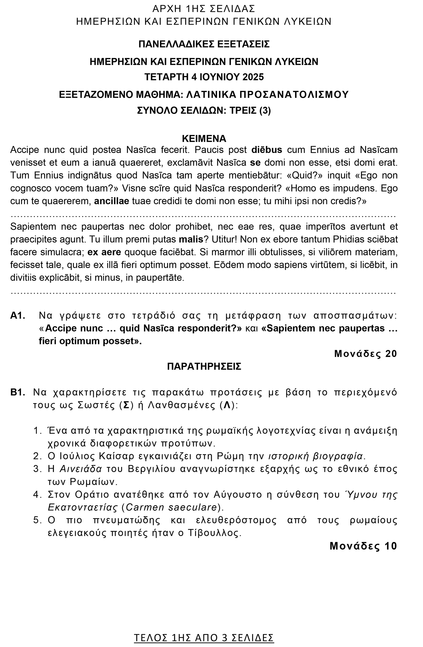 Ισορροπημένα και προσιτά τα θέματα των Λατινικών