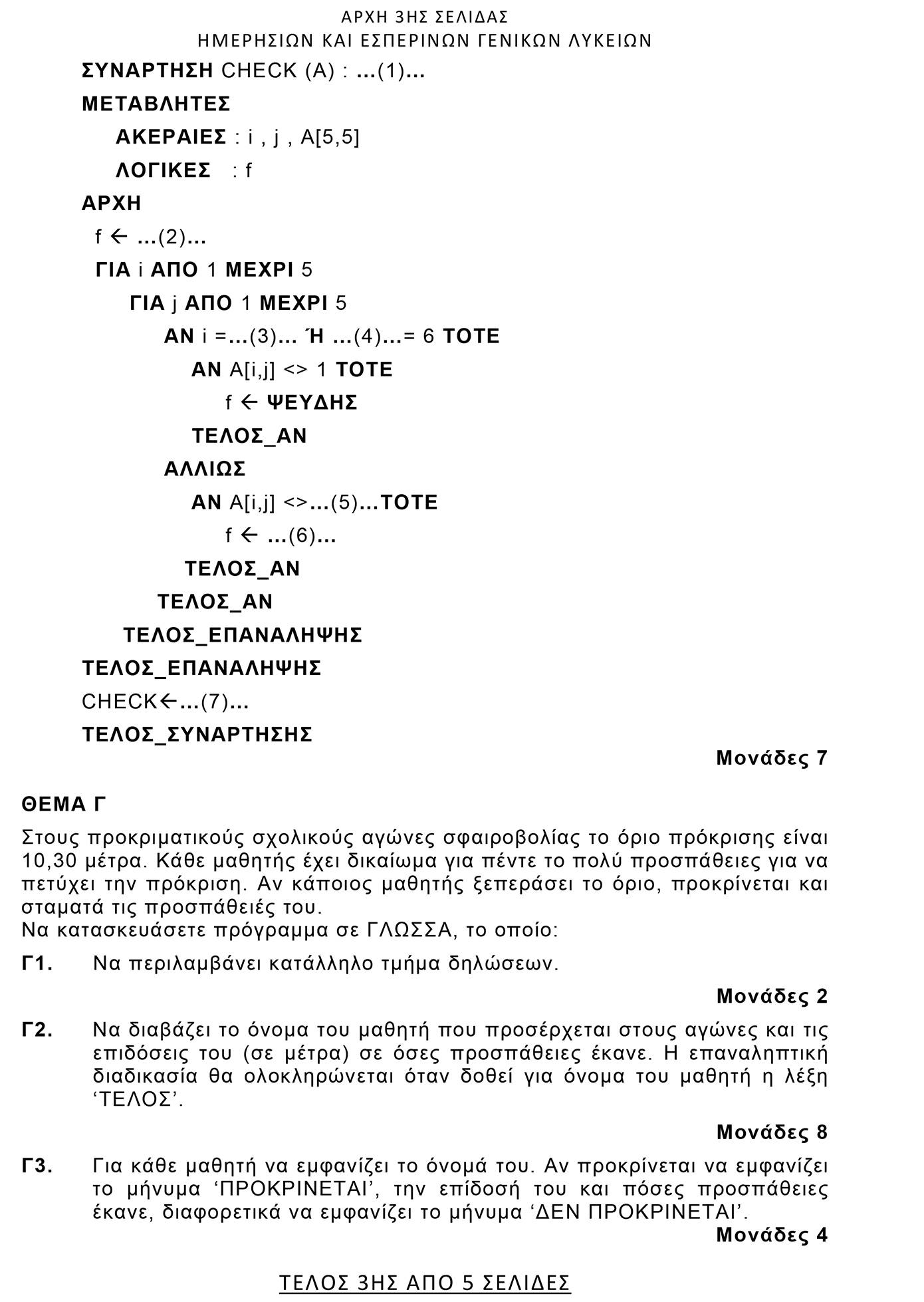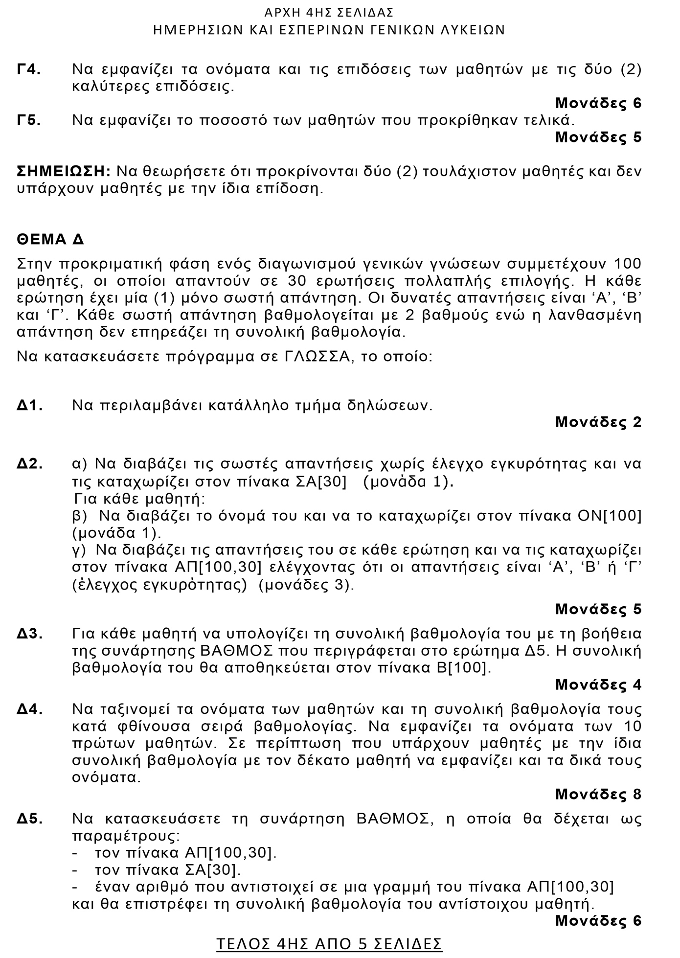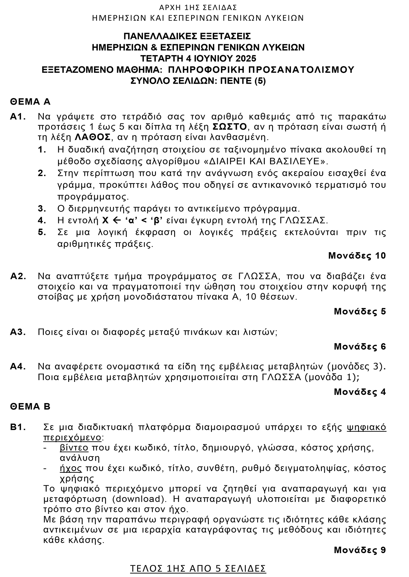 Ευκολότερα από την περυσινή χρονιά τα θέματα της Πληροφορικής