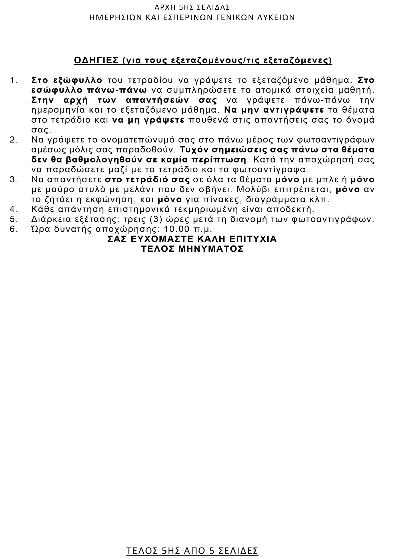 Τα θέματα που έπεσαν σήμερα Τετάρτη (04/06) στις πανελλήνιες εξετάσεις στα Γενικά Λύκεια ανακοίνωσε το υπουργείο Παιδείας. Πρόκειται για τα θέματα στα Λατινικά, τη Χημεία και την Πληροφορική.