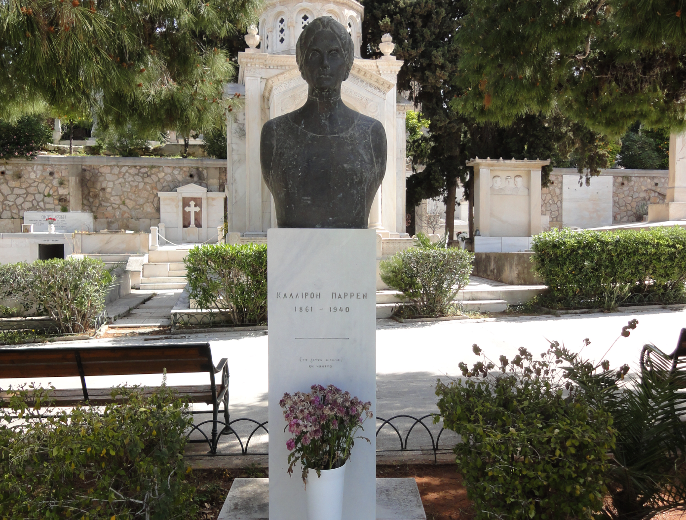 1992: Τοποθετείται στο Α’ Νεκροταφείο Αθηνών η προτομή της Καλλιρρόης Παρρέν, τιμώντας την πρώτη Ελληνίδα φεμινίστρια και πρωτοπόρο της γυναικείας δημοσιογραφίας. Η συμβολική αυτή κίνηση αναγνωρίζει το έργο και την προσφορά της στον αγώνα για τα δικαιώματα των γυναικών στην Ελλάδα.