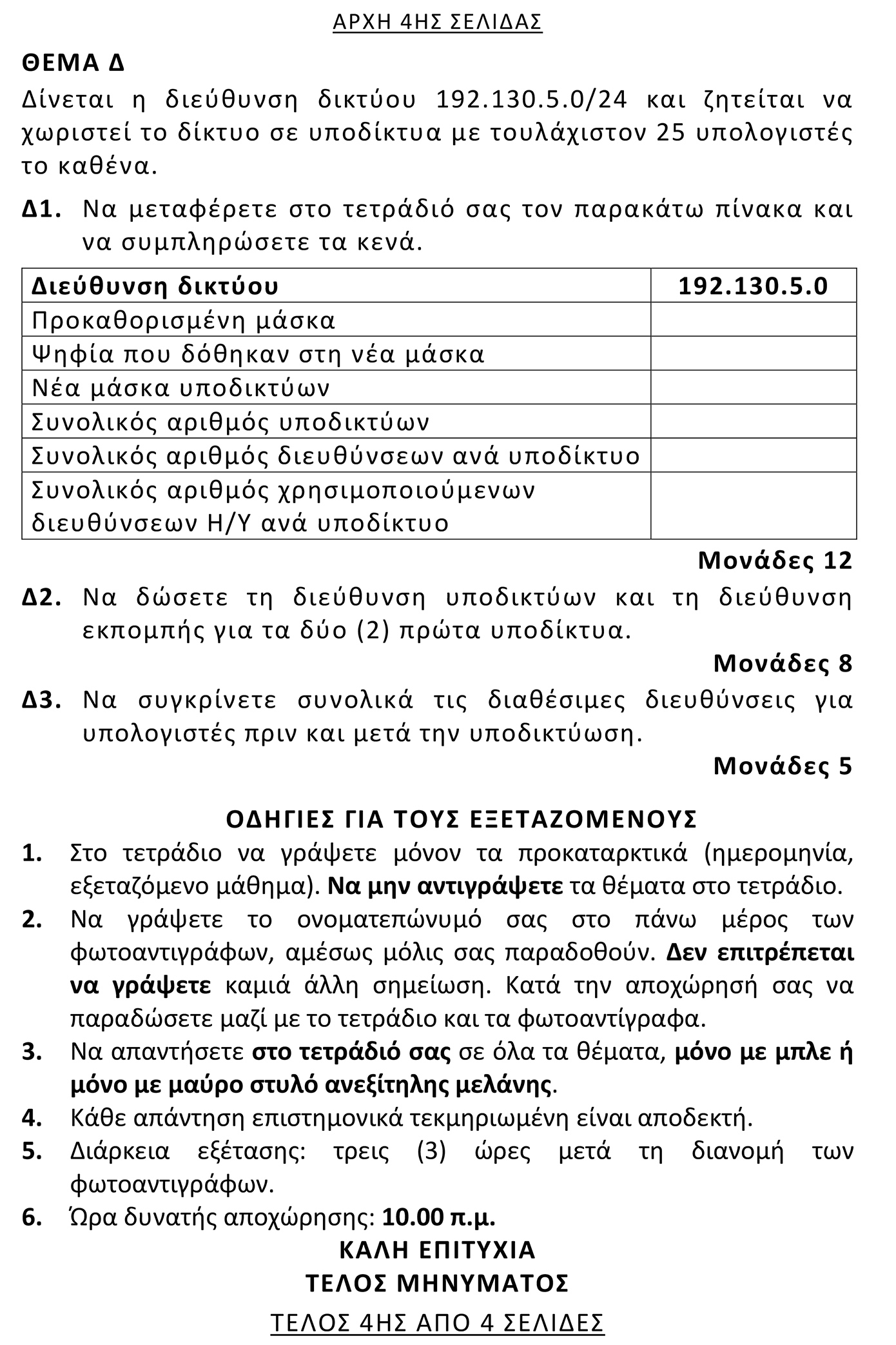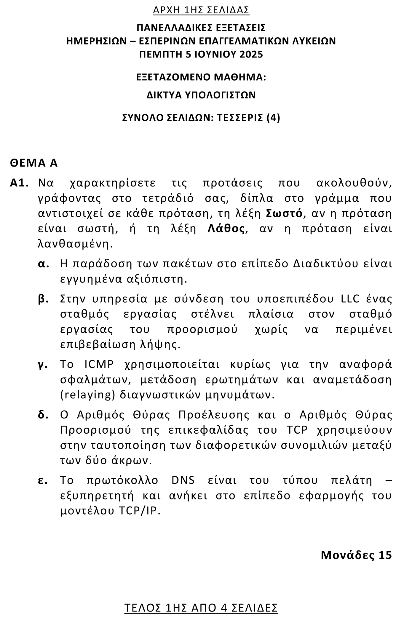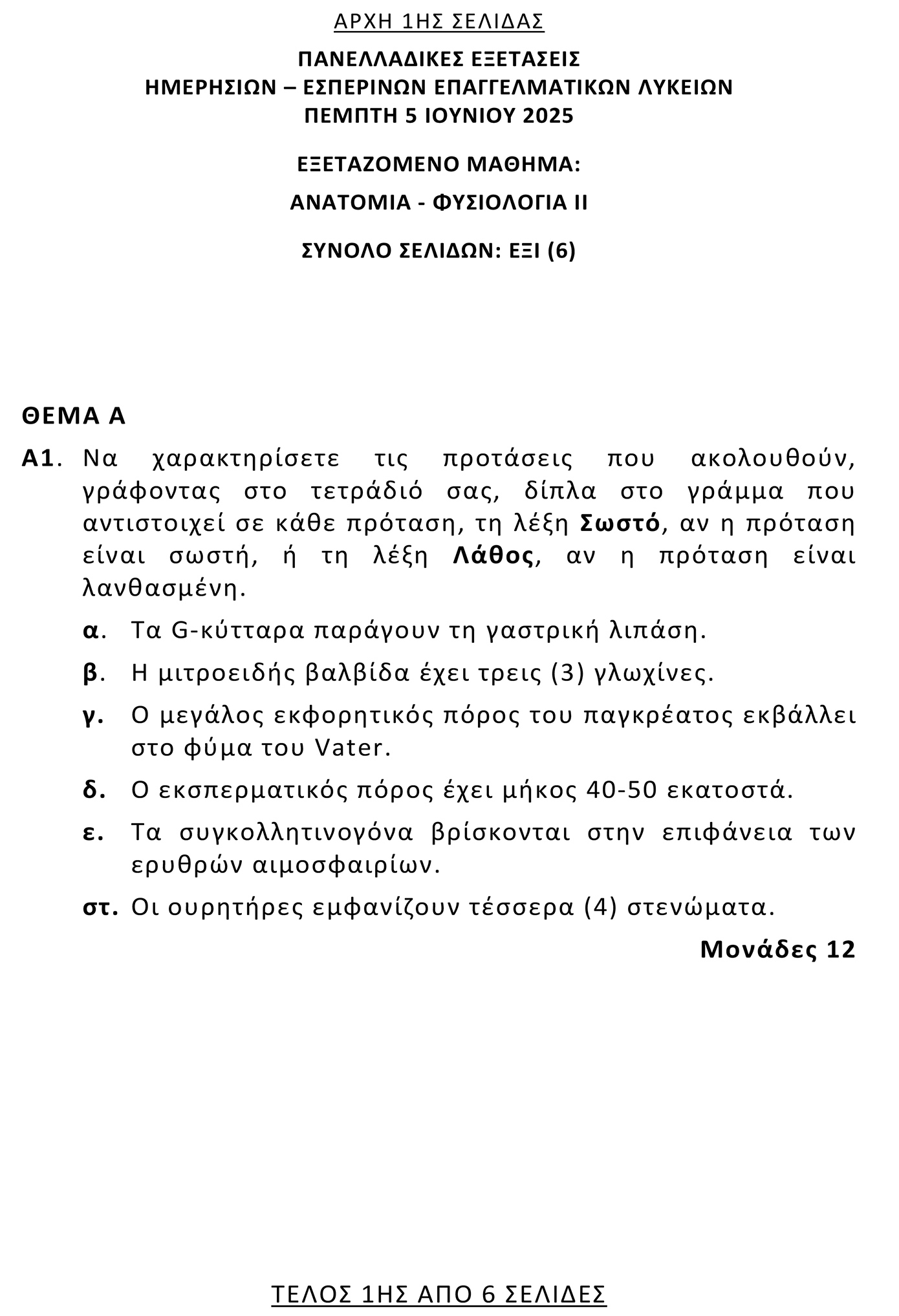Πανελληνίων συνέχεια σήμερα Πέμπτη 05/06 και οι μαθητές των ΕΠΑΛ εξετάστηκαν στα μαθήματα της Ανατομίας – Φυσιολογίας ΙΙ, των Αρχών Οικονομικής Θεωρίας, των Δικτύων Υπολογιστών και των Αρχών Βιολογικής Γεωργίας.