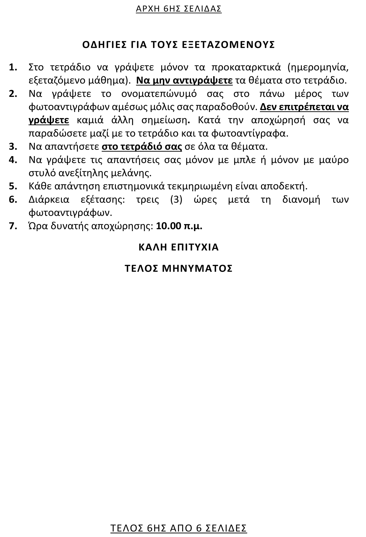 Το υπουργείο Παιδείας ανακοίνωσε τα θέματα: