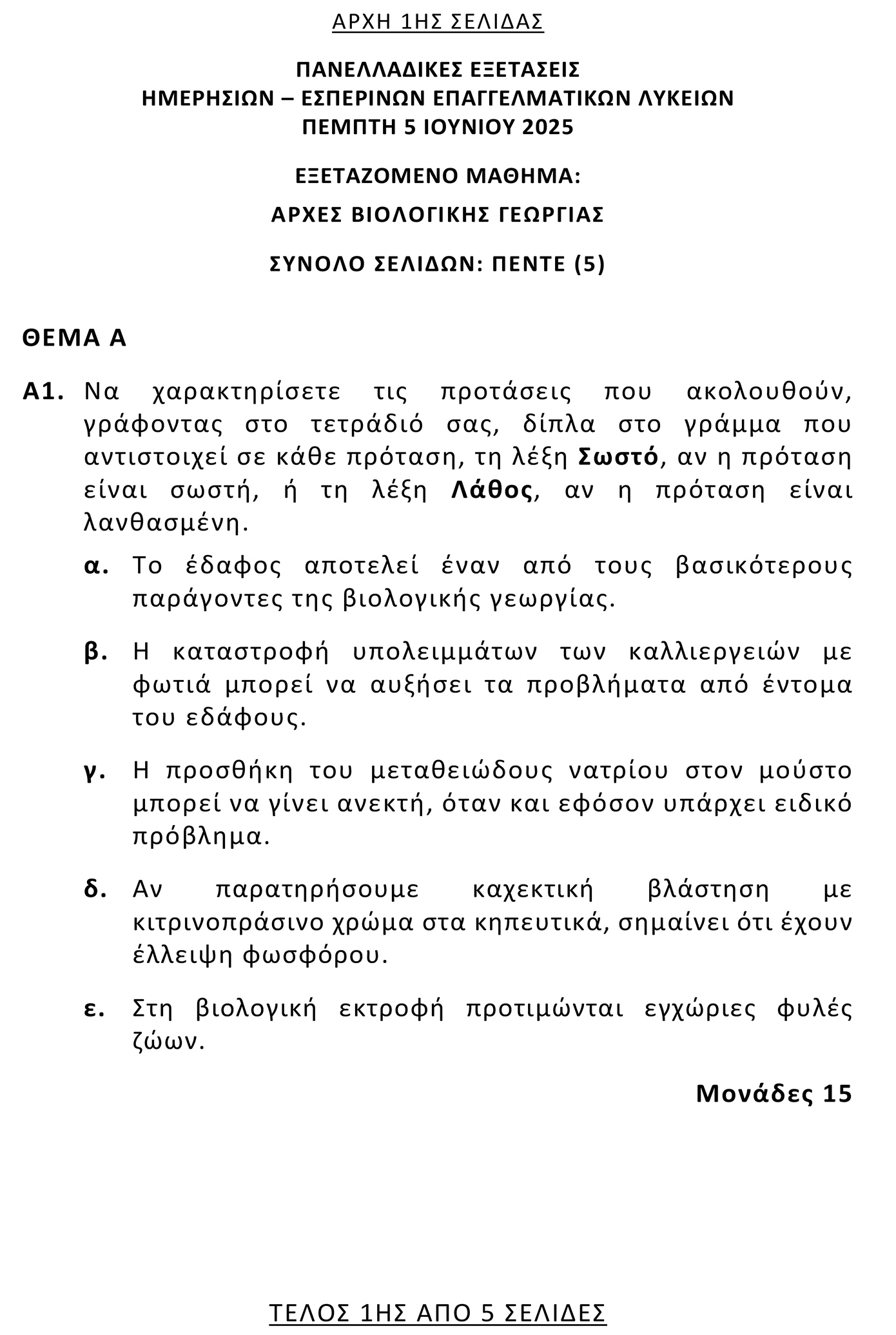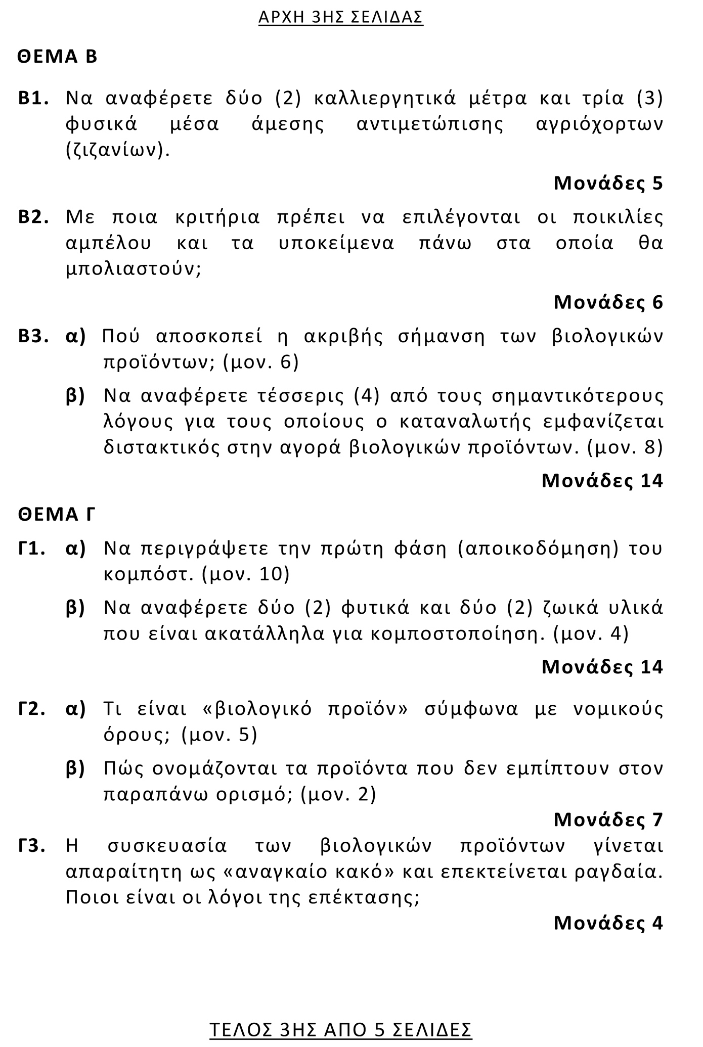 Τα θέματα στο μάθημα των Αρχών Βιολογικής Γεωργίας