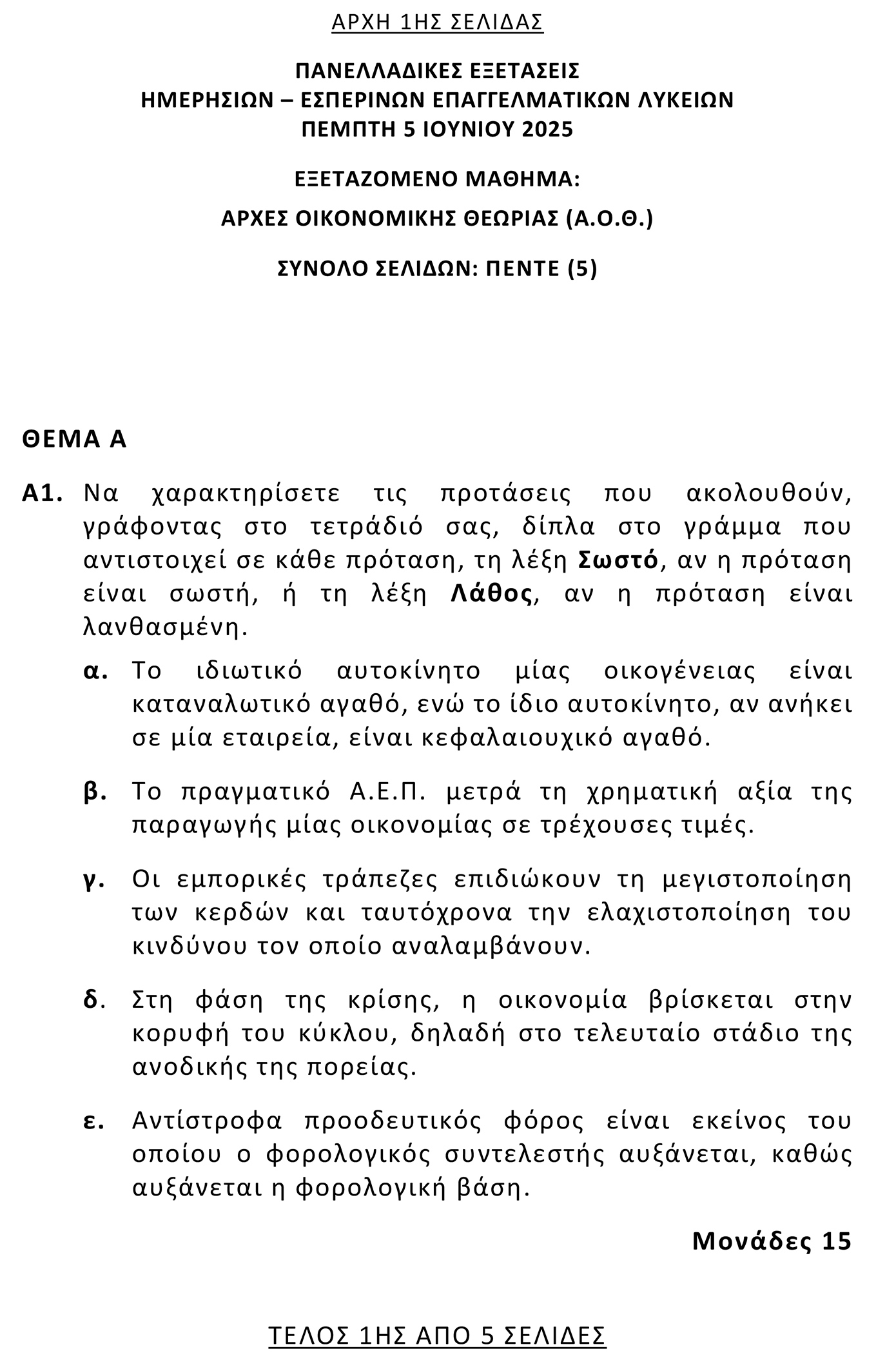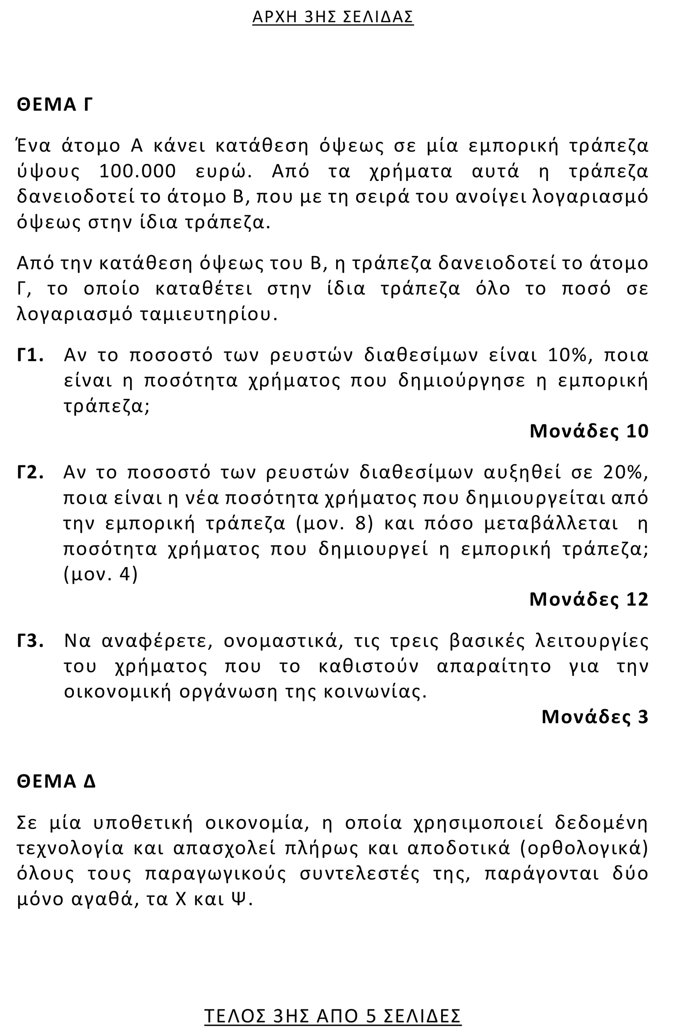 Τα θέματα στο μάθημα των Αρχών Οικονομικής Θεωρίας