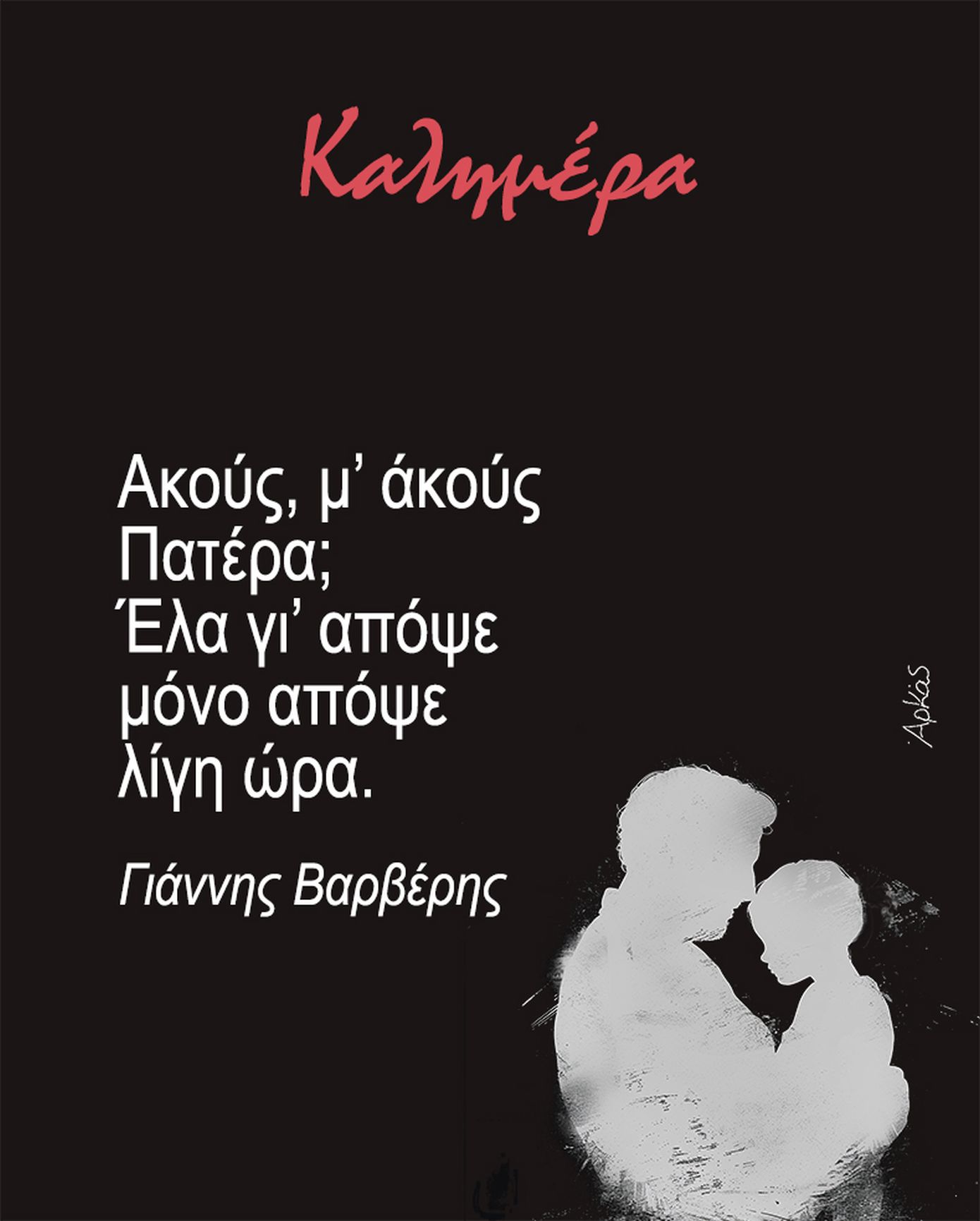 Στίχους του ποιητή Γιάννη Βαρβέρη επέλεξε ο γνωστός σκιτσογράφος Αρκάς για το σημερινό του σκίτσο, που είναι αφιερωμένο στην Ημέρα του Πατέρα.