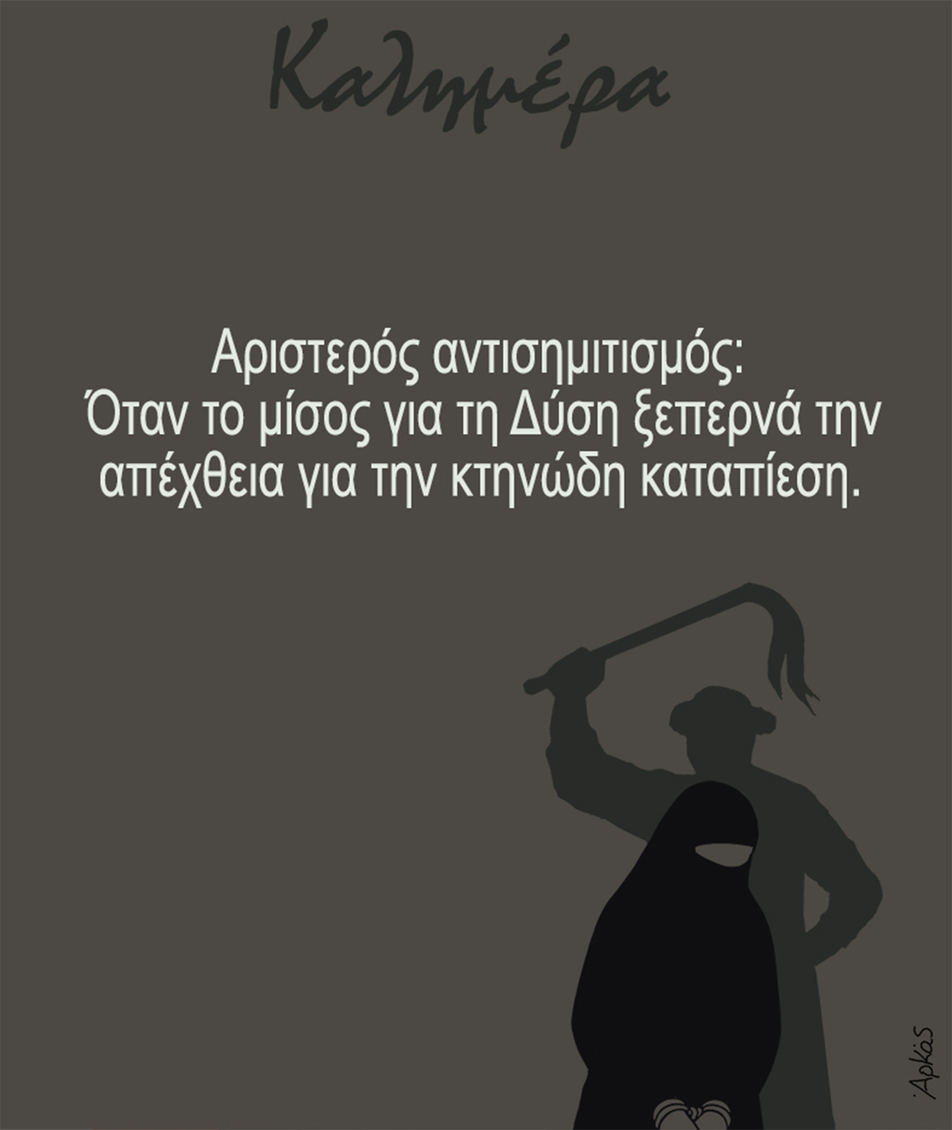 «Αριστερός αντισημιτισμός: Όταν το μίσος για τη Δύση ξεπερνά την απέχθεια για την κτηνώδη καταπίεση», γράφει στο σκίτσο του.