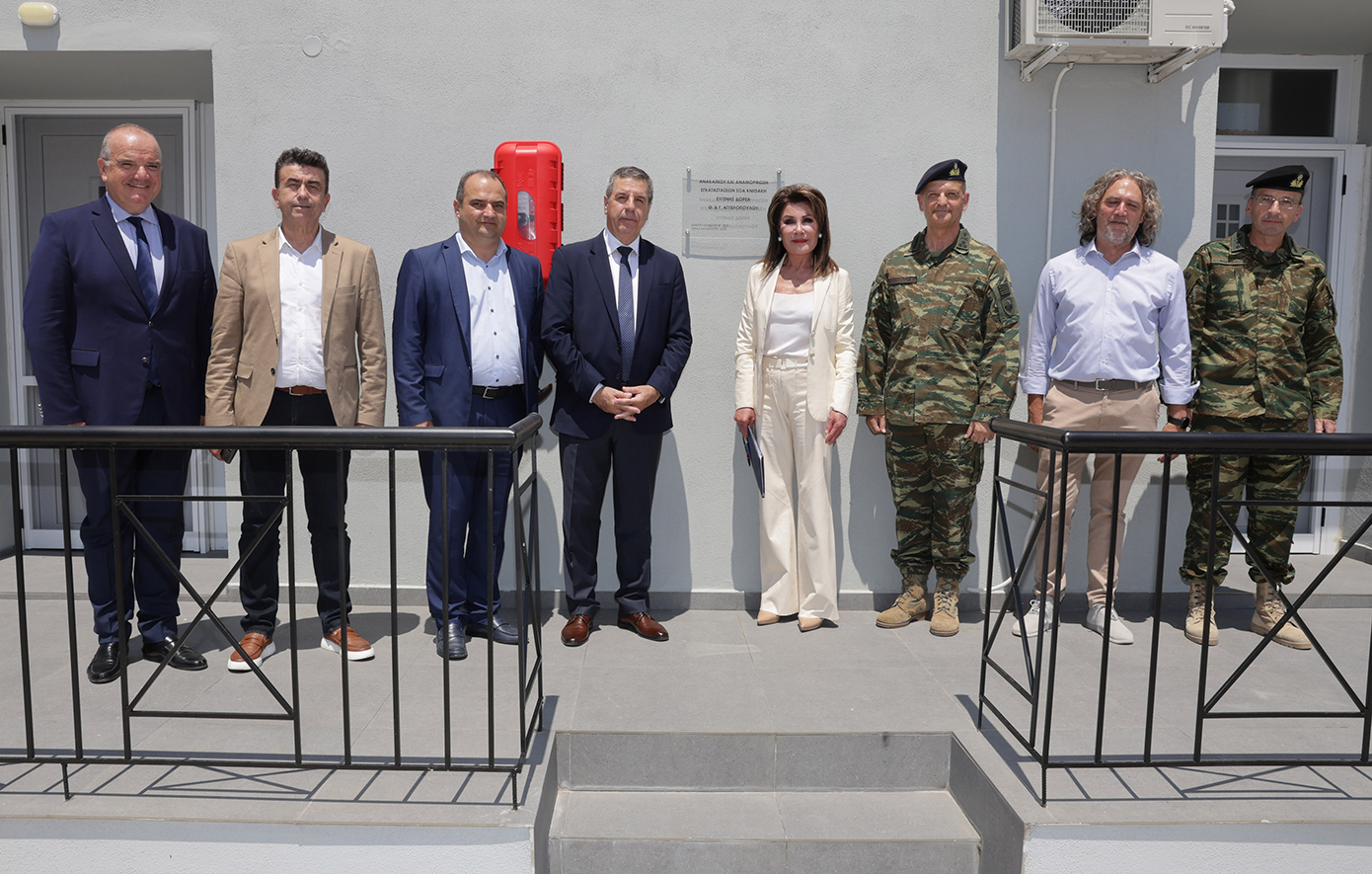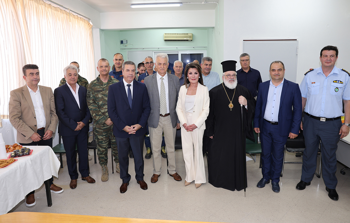 Το πρόγραμμα της επίσκεψης περιλάμβανε επίσης μετάβαση στα Στρατιωτικά Οικήματα Αξιωματικών στο πρώην στρατόπεδο «ΚΝΙΘΑΚΗ», η κατασκευή των οποίων πραγματοποιήθηκε με δωρεά του κυρίου Θεόδωρου Αγγελόπουλου και της κυρίας Γιάννας Αγγελοπούλου.