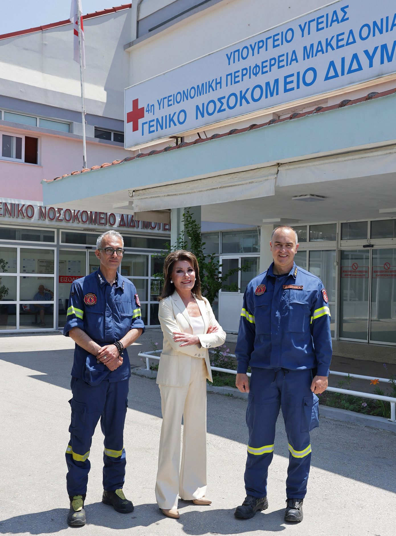 Τη Γιάννα Αγγελοπούλου υποδέχτηκε στο Γενικό Νοσοκομείο Διδυμοτείχου ο διοικητής, Χρήστος Καπετανίδης, ο αντιστράτηγος ε.α και επίτιμος αρχηγός ΓΕΣ, Χαράλαμπος Λαλούσης, καθώς και μέλη του επιστημονικού και νοσηλευτικού προσωπικού του νοσοκομείου.